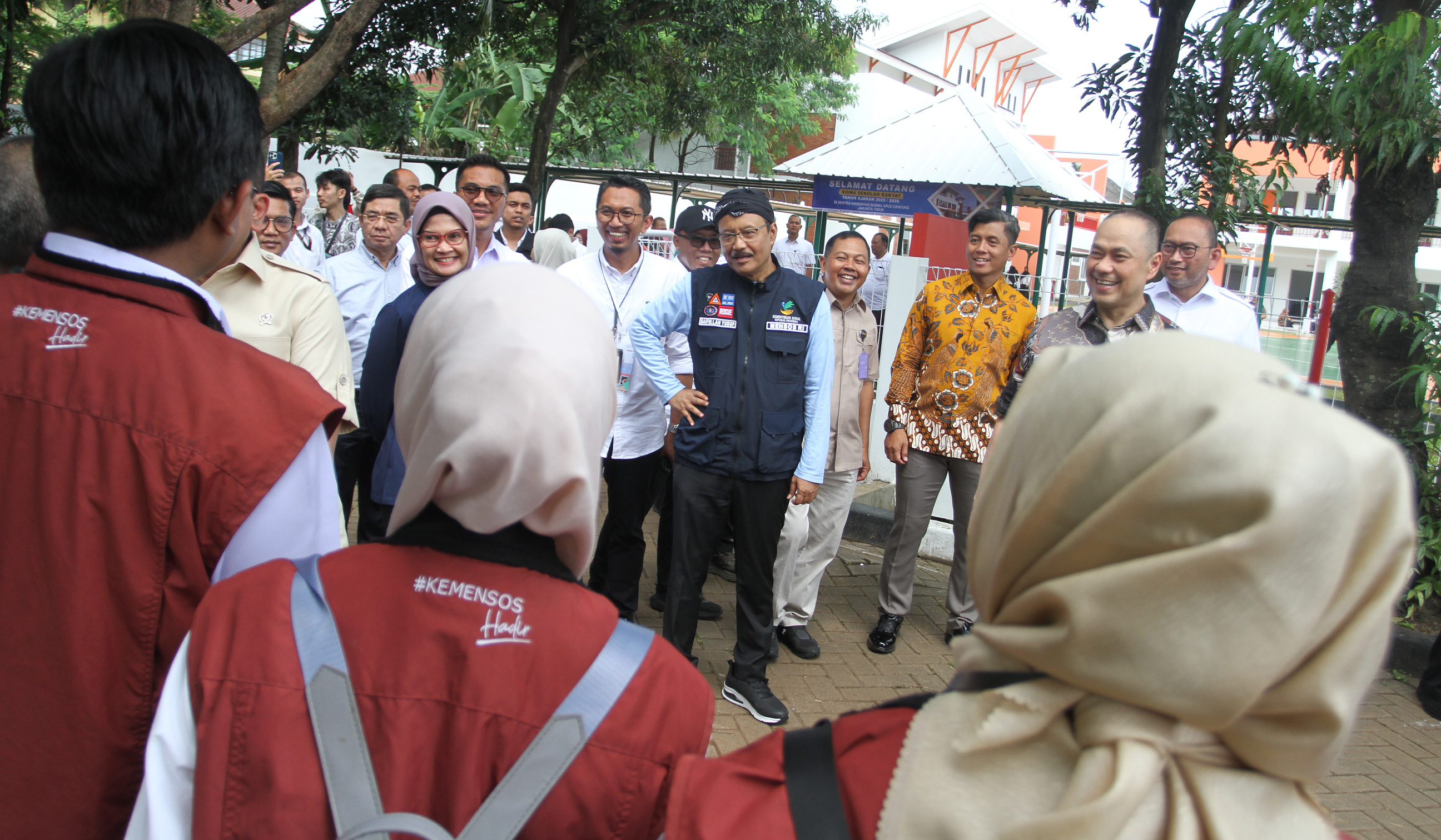 Menteri Sosial Saifullah Yusuf atau biasa disapa Gus Ipul, saat meninjau langsung kegiatan Simulasi Sekolah Rakyat di Sentra Handayani, Cipayung, Jakarta, Rabu (9 Juli 2025).