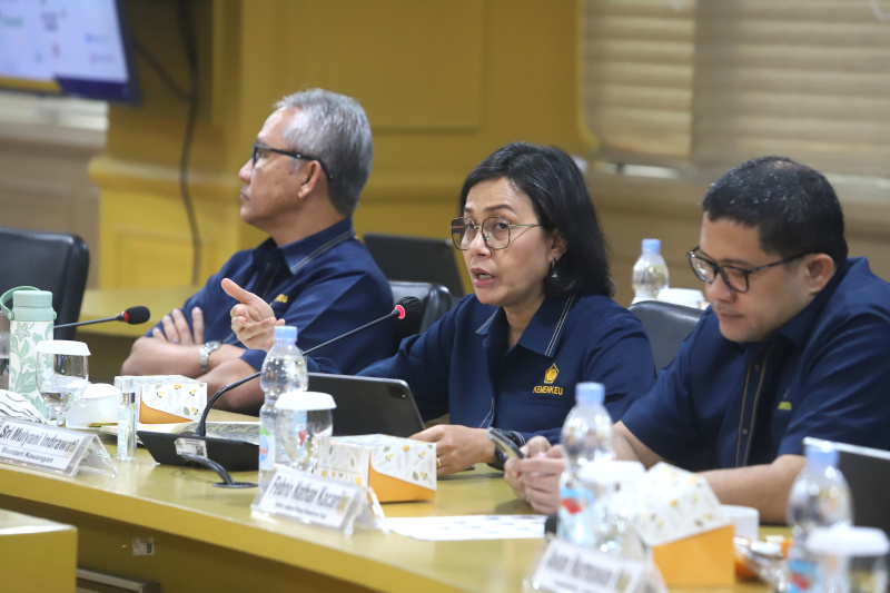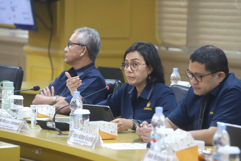 SinPo.id - Menteri Keuangan Sri Mulyani (kiri) didampingi Jajaran Kemenkeu mengikuti Rapat Kerja (Raker) dengan Komite IV DPD di Ruang Sriwijaya, Gedung B, Nusatara V, Kompleks Parlemen, Senayan, Jakarta, Rabu (9 Juli 2025). Rapat tersebut membahas mengenai Kerangka Ekonomi Makro (KEM) dan pokok-pokok kebijakan Fiskal Tahun 2026 yang difokuskan pada arah dan kebijakan transfer ke daerah.