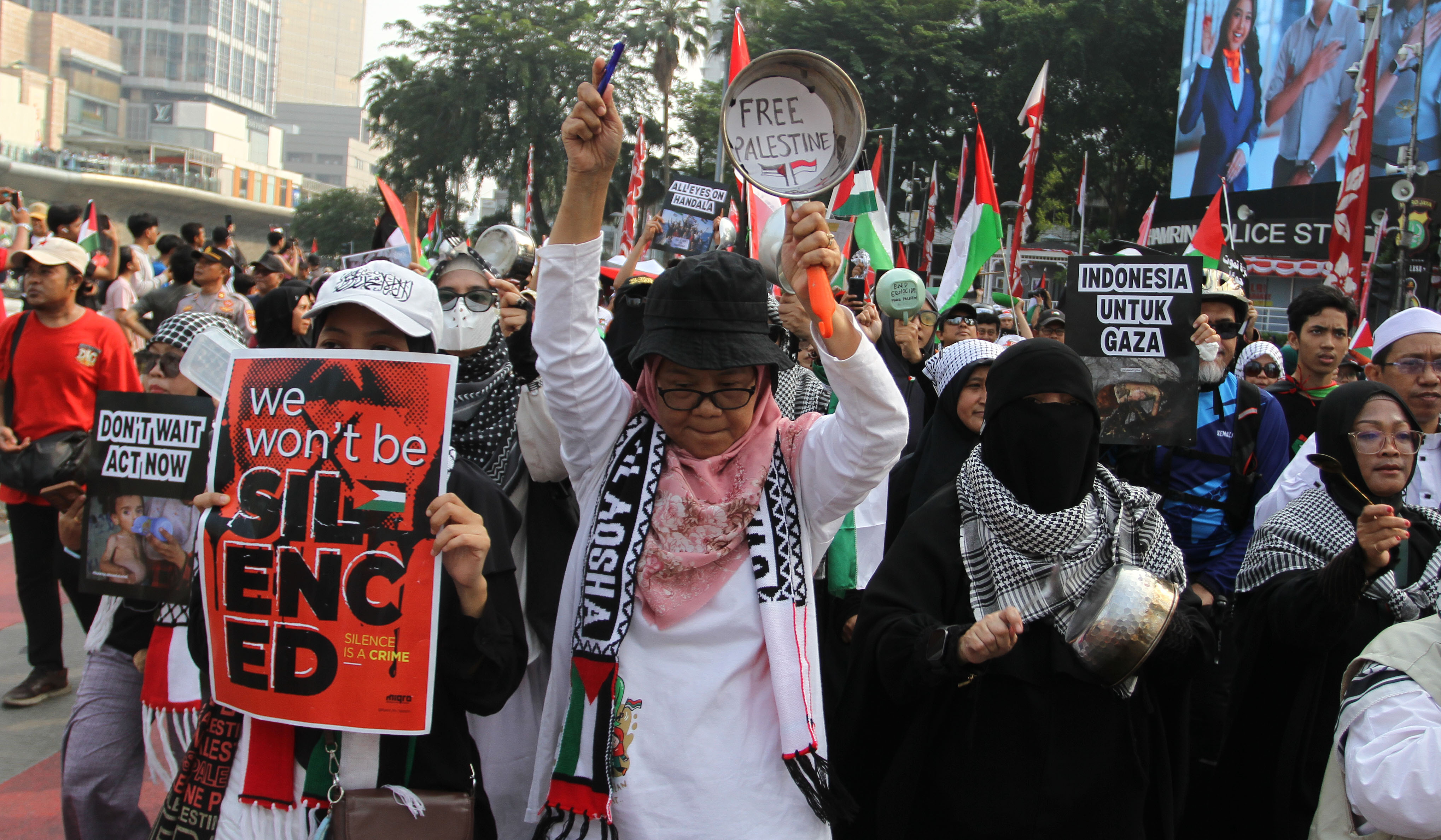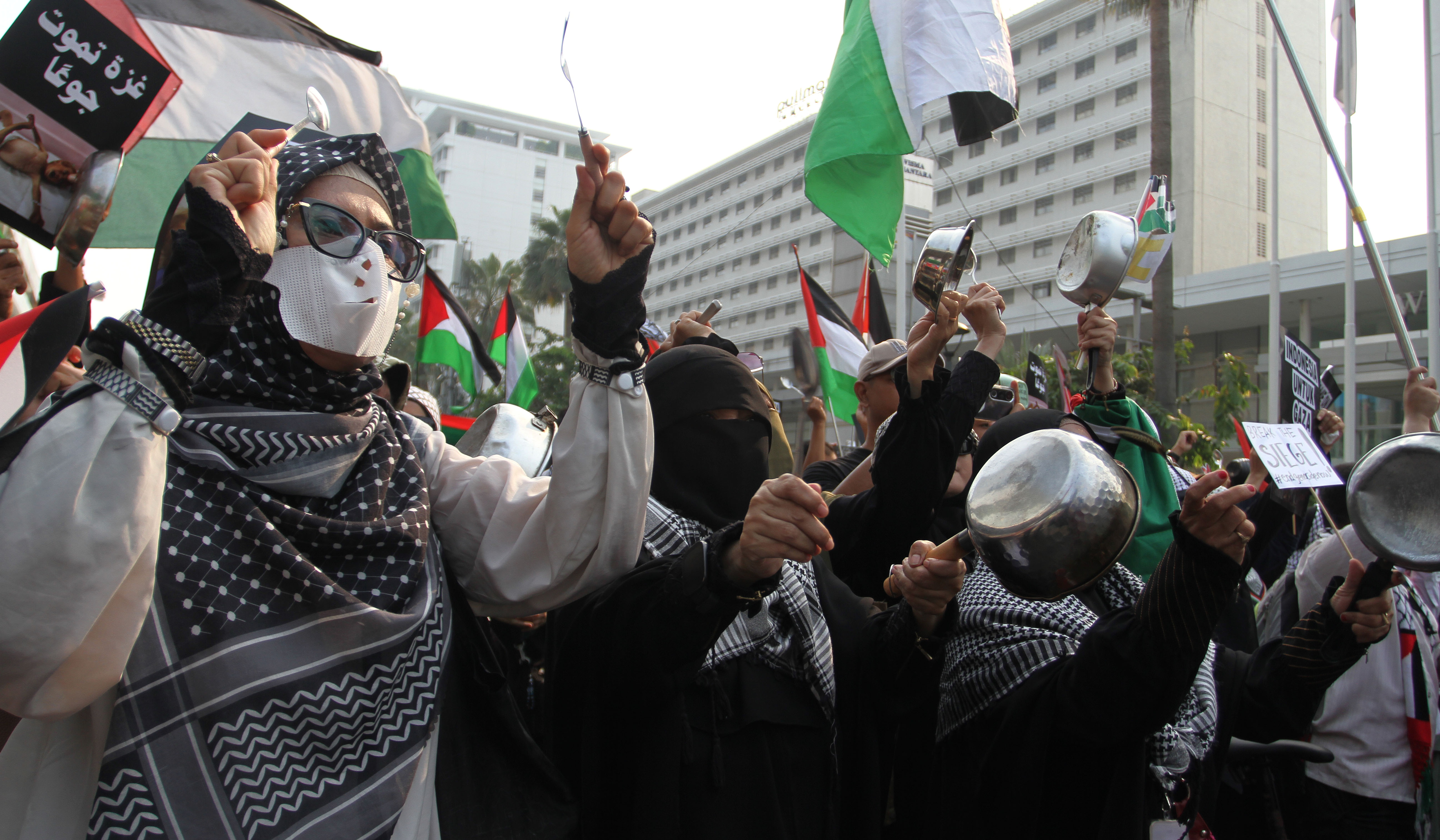 Aksi Bela Palestina Massa Bawa Alat Makan hingga Panci