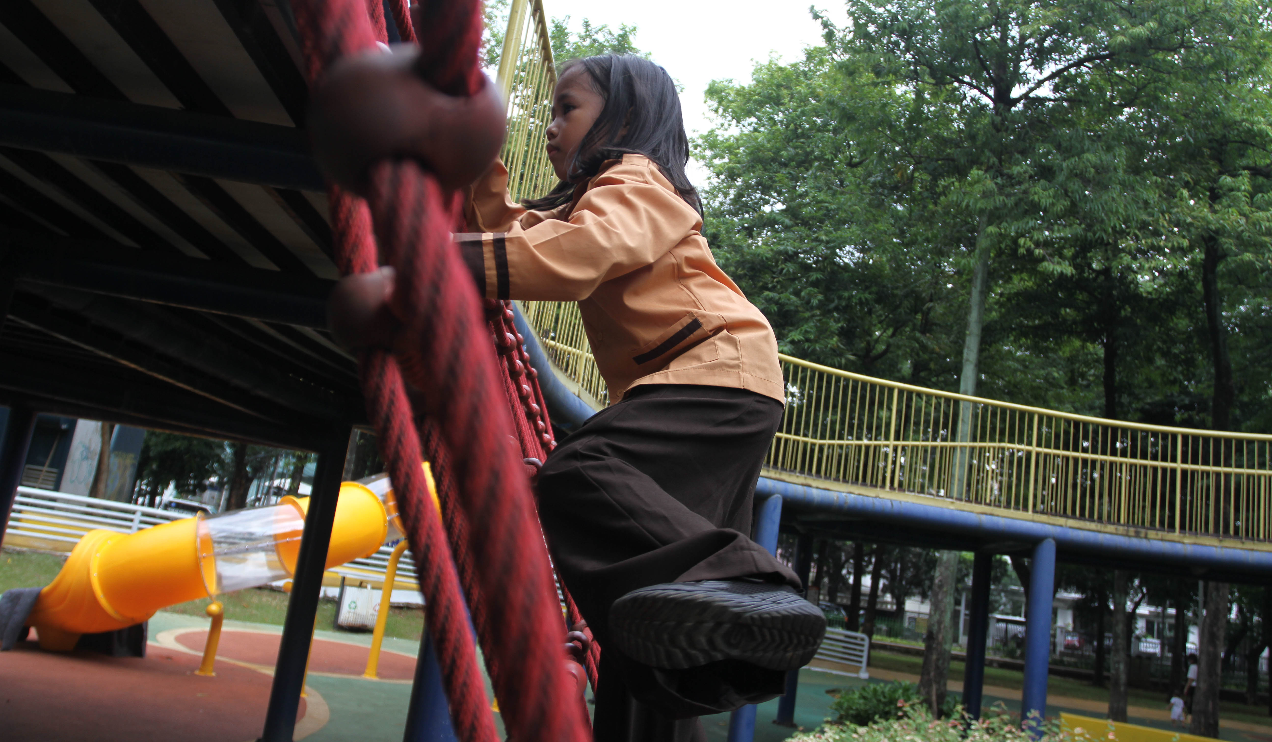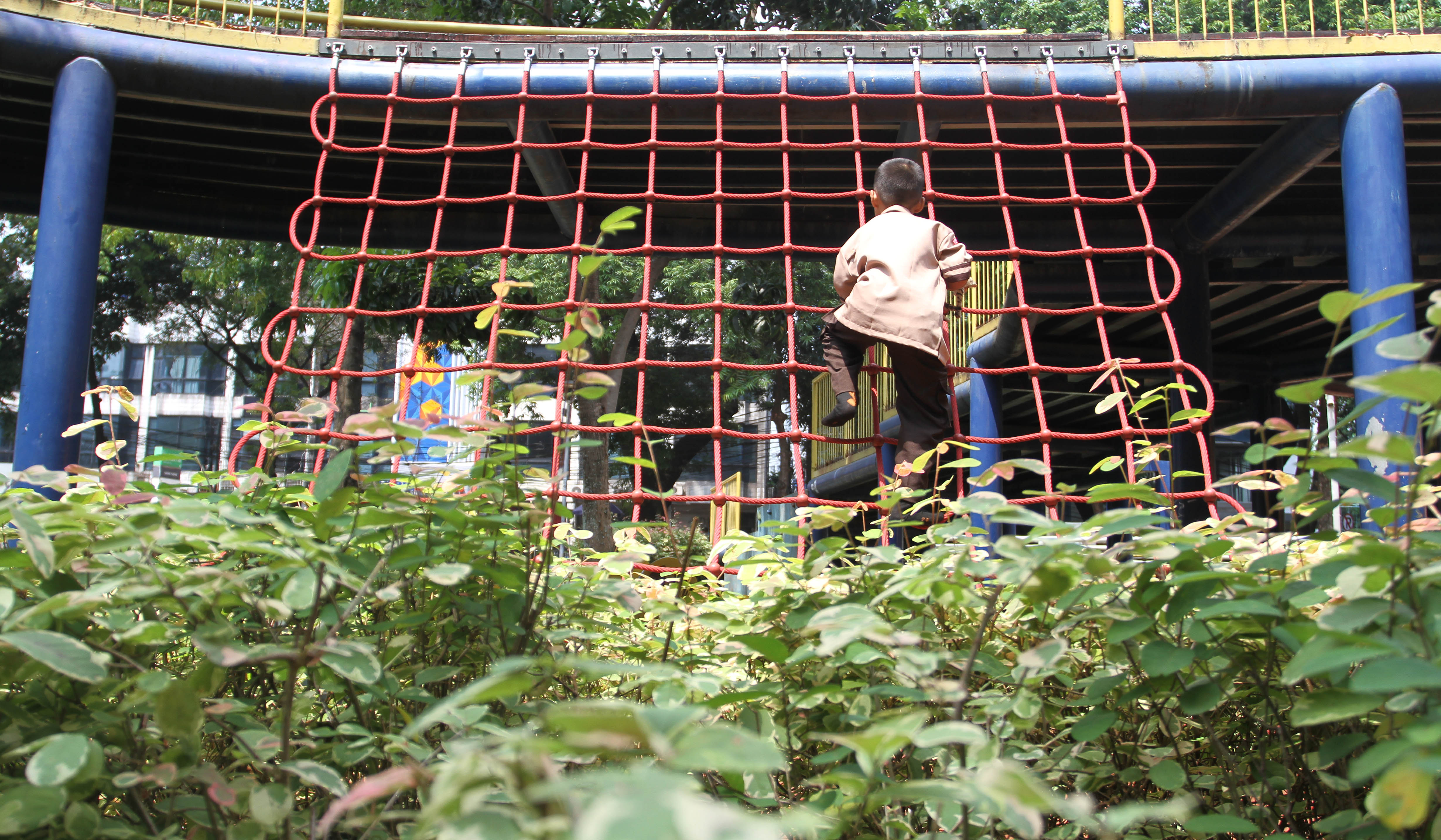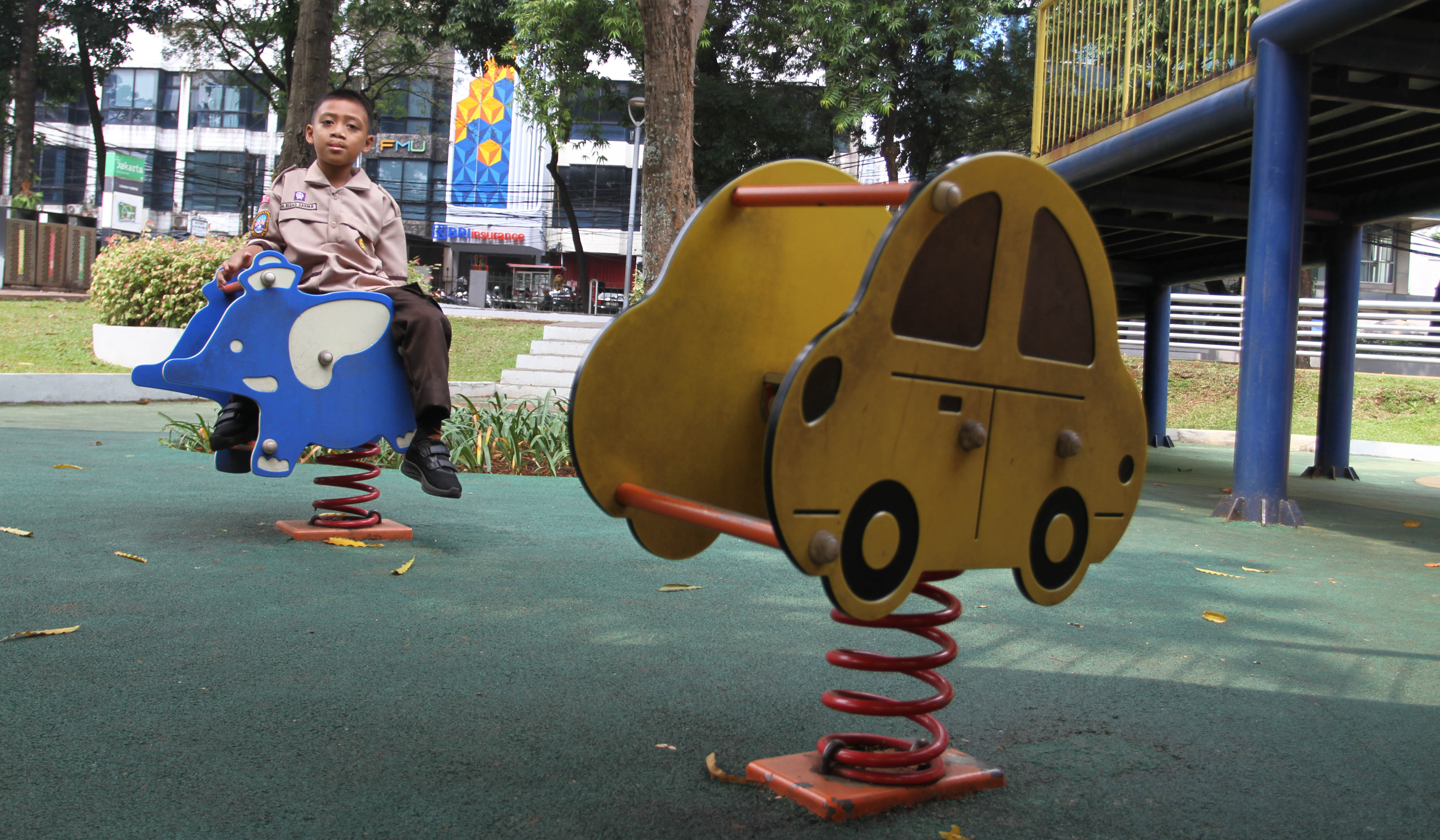 Anak bermain di Taman Puring, Jakarta. (Agus Priatna/SinPo.id)