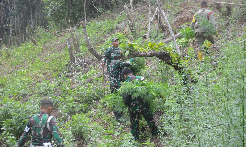 SinPo.id - TNI bersama tim gabungan memusnahkan ladang ganja seluas tiga hektare di kawasan perbukitan Tor Sihite, Desa Rao-Rao Dolok, Kecamatan Tambangan, Kabupaten Mandailing Natal.