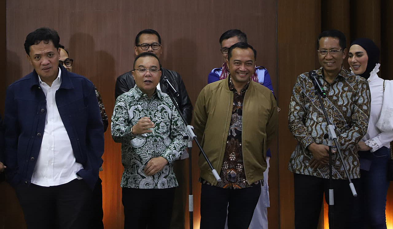 SinPo.id - Wakil Ketua DPR Sufmi Dasco Ahmad bersama Mensesneg Prasetyo Hadi dan Menteri Hukum Supratman Andi Agtas memberikan keterangan pers di Kompleks Parlemen, Senayan, Jakarta, Kamis (31 Juli 2025). DPR menyetujui pemberian abolisi kepada terpidana kasus korupsi impor gula Tom Lembong dan amnesti kepada Sekjen PDIP Hasto yang diajukan oleh Presiden Prabowo.