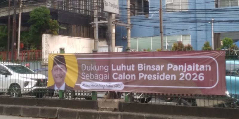 Spanduk yang mencantumkan Aliansi Pendukung Luhut (APL) ini, menuliskan pesan "Dukung Luhut Binsar Panjaitan sebagai Calon Presiden 2026".