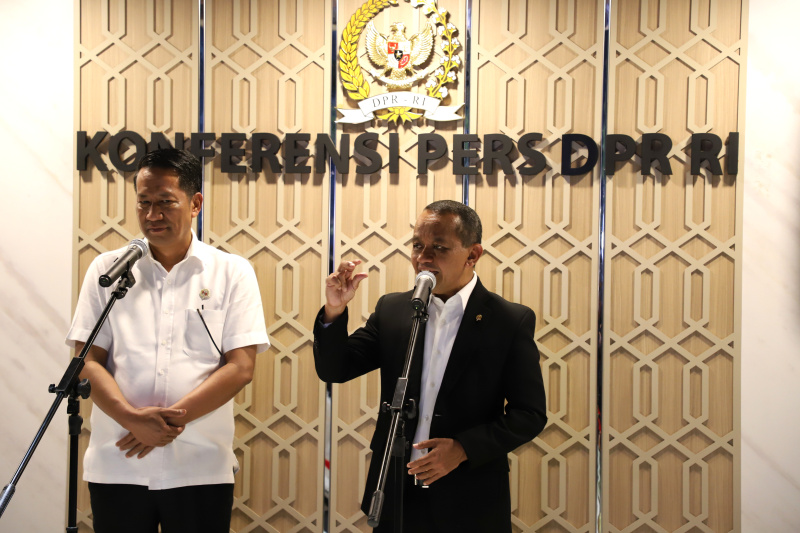 SinPo.id - Menteri Hukum (Menkum) Supratman Andi Agtas dan Menteri ESDM Bahlil Lahadalia menggelar konfrensi pers terkait RUU Minerba di Loby Gedung Nusantara II, Kompleks Parlemen, Senayan, Jakarta, Senin (17 Februari 2025). Menteri Menkum Supratman Andi Agtas dan Menteri ESDM Bahlil Lahadalia menyampaikan, Bahwa pemerintah secara tidak langsung membatalkan kebijakan kampus untuk mengelola tambang.