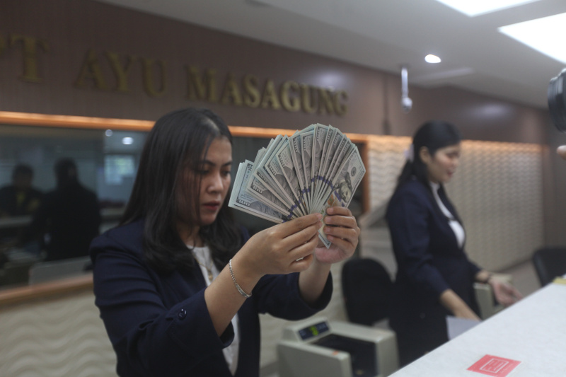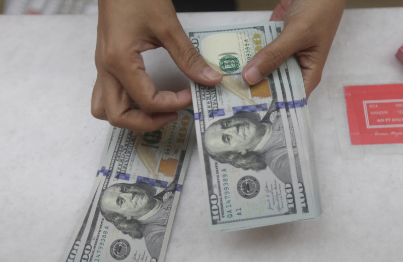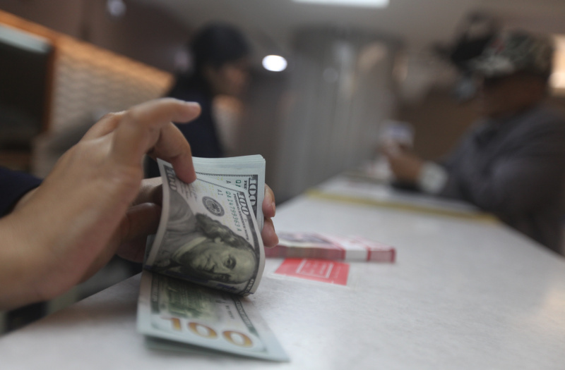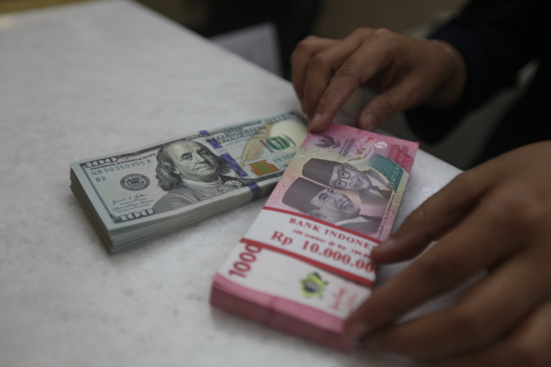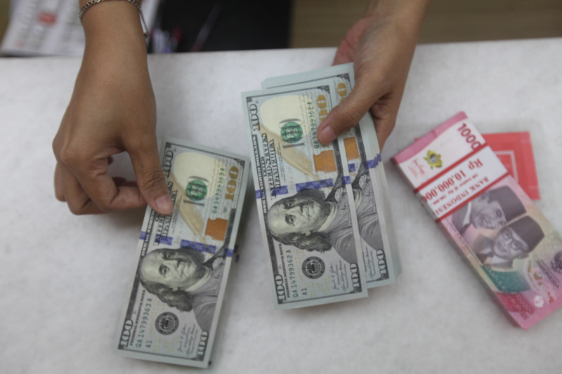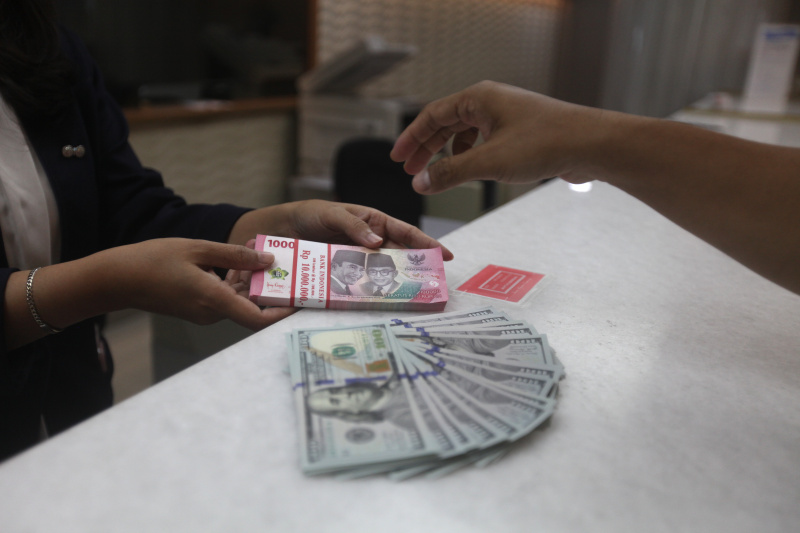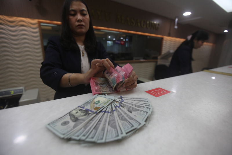 SinPo.id - Petugas sedang menghitung sejumlah uang Dolar AS di Penukaran Uang PT Ayu Masagung, Kwitang, Jakarta, Rabu (9 April 2025). Nilai tukar Rupiah di Jakarta Interbank Spot Dollar Rate (Jisdor) Bank Indonesia ada di level Rp 16.849 per dolar AS pada Selasa (8/4/2025), melemah 1,71% dari level sebelum libur lebaran yakni Rp 16.566 per dolar AS pada Kamis (27/3/2025). Nilai tukar rupiah diprediksi akan bergerak melemah menyentuh level Rp17.050 per dolar AS pada perdagangan hari Selasa (8/4/2025), usai libur Lebaran Idulfitri 1446 H. Melemahnya nilai tukar rupiah ini disebabkan oleh sejumlah sentimen yang datang dari global, utamanya kebijakan tarif Donald Trump.