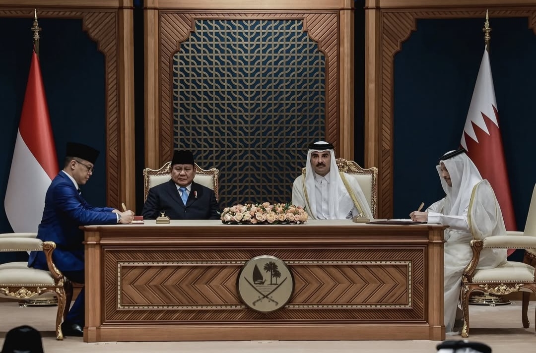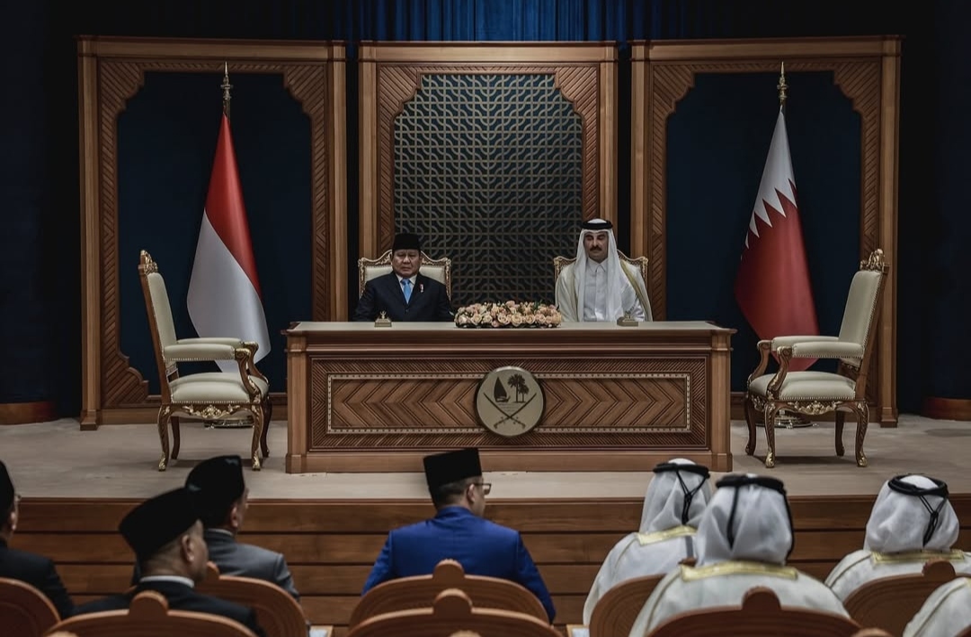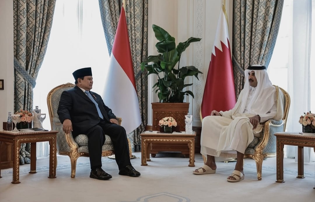 SinPo.id - Presiden Prabowo Subianto dalam lawatan kenegaraan bertemu Presiden Emir Qatar Sheikh Tamim bin Hamad Al Thani di Istana Amiri Diwan, Doha, Qatar, Minggu (13 April 2025). Dalam pertemuan tersebut Presiden Prabowo dan Presiden Emir Qatar Tamim bin Hamad Al Thani menandatangani nota kesepahaman yang bertujuan memperkuat Kemitraan Strategis Komprehensif antara Indonesia dan Qatar.
