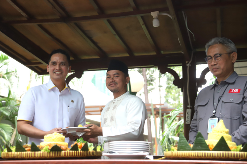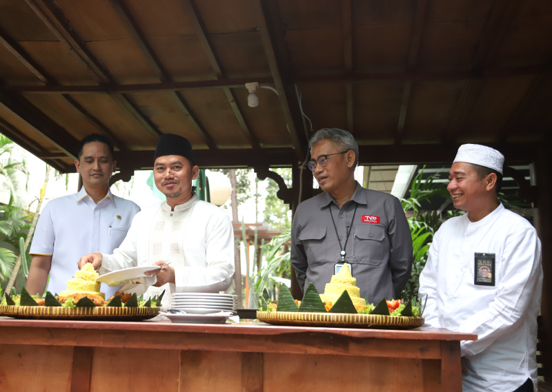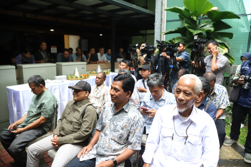 Ketua Koordinatoriat Wartawan Parlemen Ariawan dan Kabiro Pemberitaan DPR menggelar acara halal bihalal (Ashar/SinPo.id)