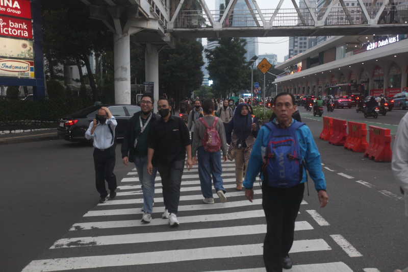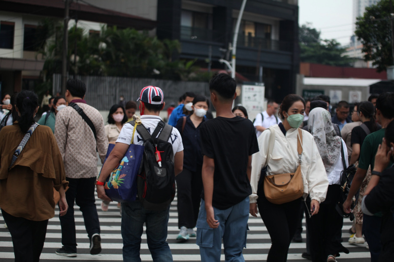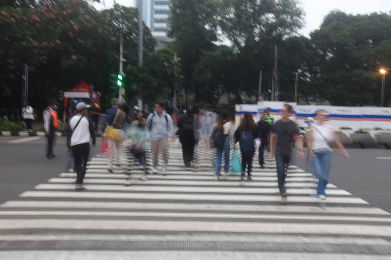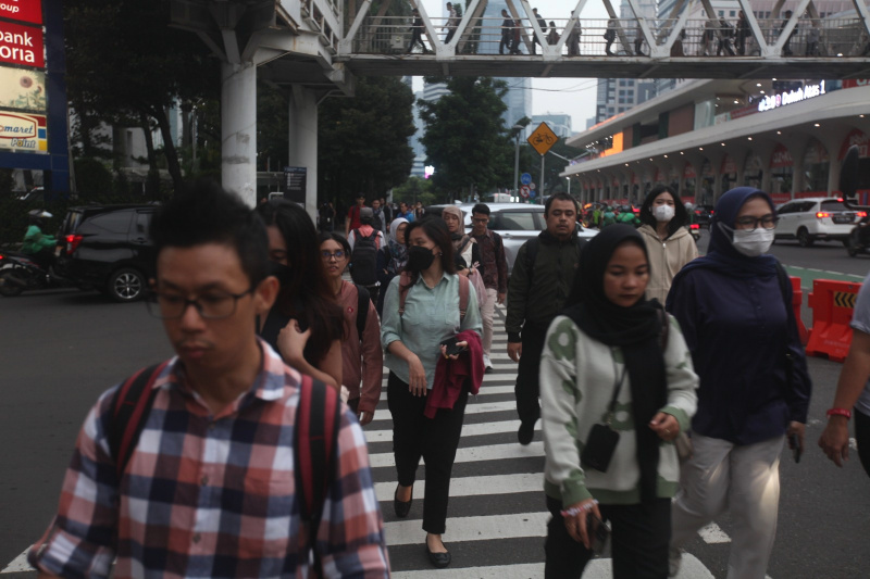 SinPo.id - Para pekerja sedang berjalan saat jam pulang kerja di Jalan Jenderal Sudirman, Jakarta, Rabu (28 Mei 2025). Kementerian Ketenagakerjaan (Kemnaker) berencana menghapus ketentuan batas usia sebagai salah satu syarat dalam proses rekrutmen tenaga kerja. Gagasan penghapusan persyaratan batas usia dalam iklan lowongan kerja ini rencananya akan dituangkan melalui penerbitan Surat Edaran (SE). Langkah ini diambil sebagai respons atas banyaknya pekerja berusia lanjut yang mengalami pemutusan hubungan kerja (PHK) dan kemudian menghadapi kesulitan saat mencari pekerjaan baru akibat adanya syarat batas usia.