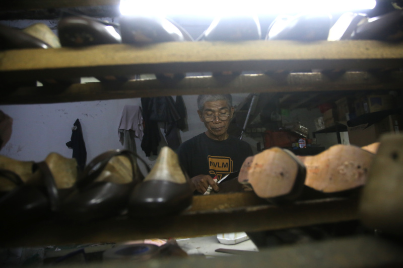 SinPo.id - Pekerja menyelesaikan pembuatan sepatu di kawasan Serua, Depok, Jawa Barat, Jumat (30 Mei 2025). Menteri Perdagangan (Mendag) Budi Santoso mengatakan, nilai transaksi Usaha Mikro, Kecil dan Menengah (UMKM) yang mengikuti program UMKM Bisa Ekspor telah mencapai Rp850 miliar hingga April 2025. Pada 2025, pemerintah menargetkan ekspor UMKM naik 9,63 persen dari 2024.