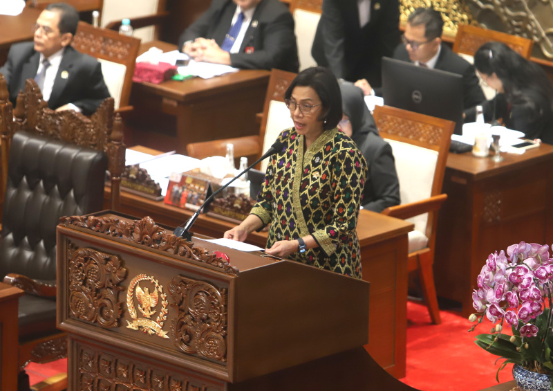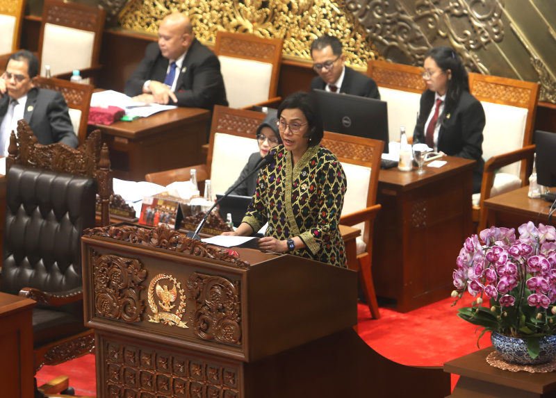 SinPo.id - DPR RI menggelar Rapat Paripurna ke-21 Masa Persidangan IV tahun sidang 2024-2025 di Gedung Nusantara II, Kompleks Parlemen, Senayan, Jakarta, Selasa (1 Juli 2025). Dalam rapat tersebut hadir Menteri Keuangan (Menkeu) Sri Mulyani didampingi oleh Wakil Menteri Keuangan (Wamenkeu) Thomas Djiwandono untuk membacakan laporan APBN TA 2024 dan pandangan fraksi atas Kerangka Ekonomi Makro (KEM) dan Pokok-pokok Kebijakan Fiskal (PPKF) RAPBN TA 2026. Dalam Rapat Tersebut dipimpin langsung oleh Ketua DPR RI Puan Maharani didampingi oleh Wakil Ketua DPR Adies Kadir, Wakil Ketua DPR Saan Mustopa dan Wakil Ketua DPR Cucun Sjamsurijal.