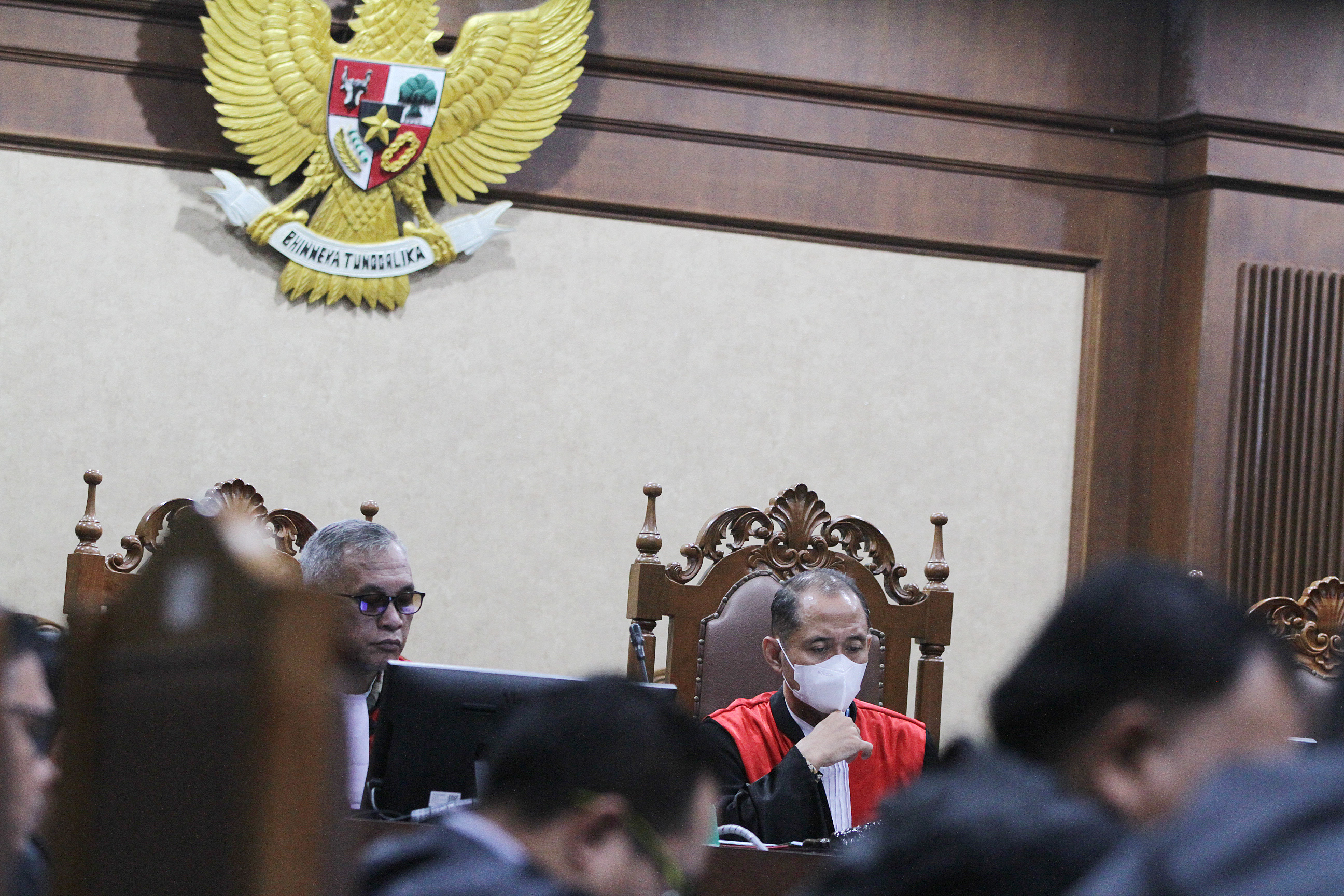 Terdakwa kasus dugaan suap terkait penggantian antarwaktu (PAW) anggota DPR RI dan perintangan penyidikan kasus Harun Masiku yang juga Sekjen PDIP Hasto Kristiyanto, saat menjalani sidang tuntutan di Pengadilan Tipikor, Jakarta, Kamis (3 Juli 2025). Hasto