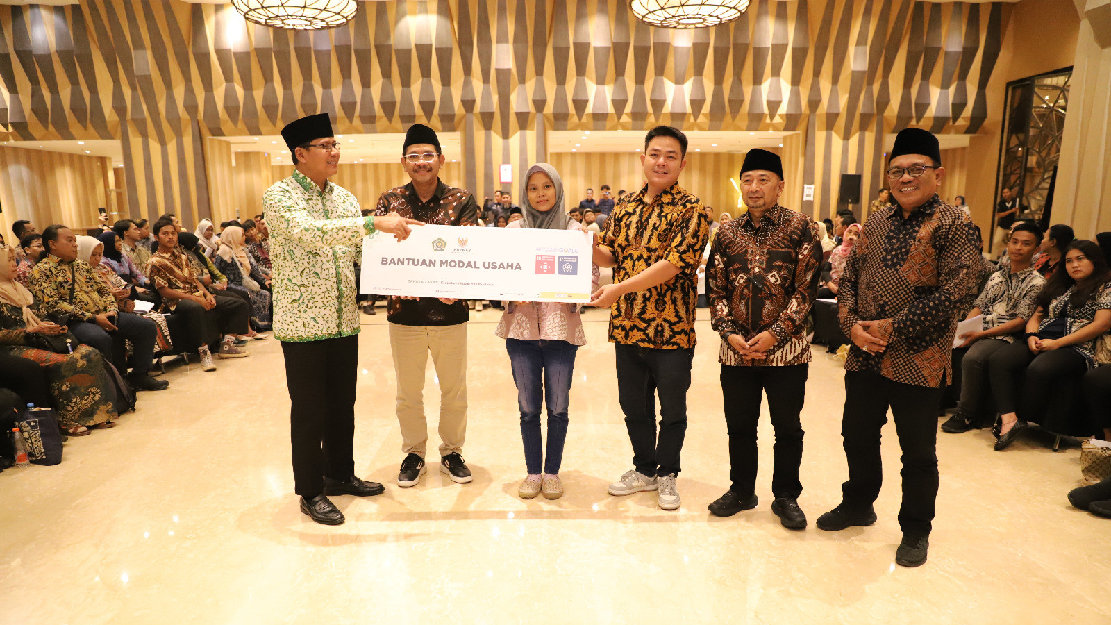 Penyerahan simbolis dilakukan oleh Deputi II BAZNAS RI, Imdadun Rahmat, bersama Dirjen Bimas Islam Kementerian Agama, Abu Rokhmad, kepada pasangan Mahendra Lubis dan Nurul Alfiani sebagai perwakilan penerima bantuan.