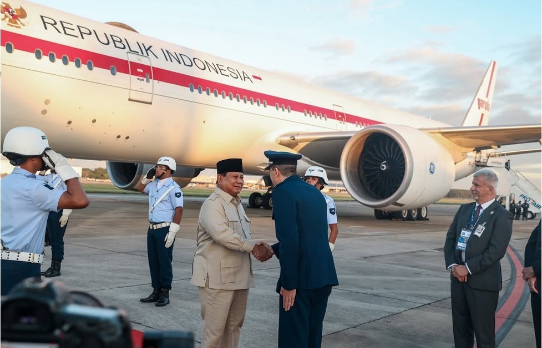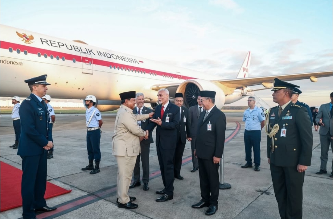 Presiden Prabowo Subianto dalam kunjungan kenegaraan tiba di Brazil dalam rangka akan menghadiri KTT BRICS (Ashar/Foto: BiroSetpres/SinPo.id)
