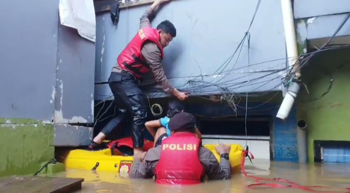 Luapan Ciliwung Rendam Kampung Melayu, Polisi Bantu Evakuasi Warga
