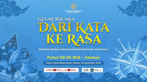 SinPo.id - Kementerian Kebudayaan melalui Direktorat Jenderal Diplomasi, Promosi, dan Kerja Sama Kebudayaan menyelenggarakan gelar wicara bertajuk “Dari Kata ke Rasa: Sastra dan Gastronomi” di Plaza Insan Berprestasi, Kompleks Kemendikbudristek, Senayan, Jakarta, Selasa 2