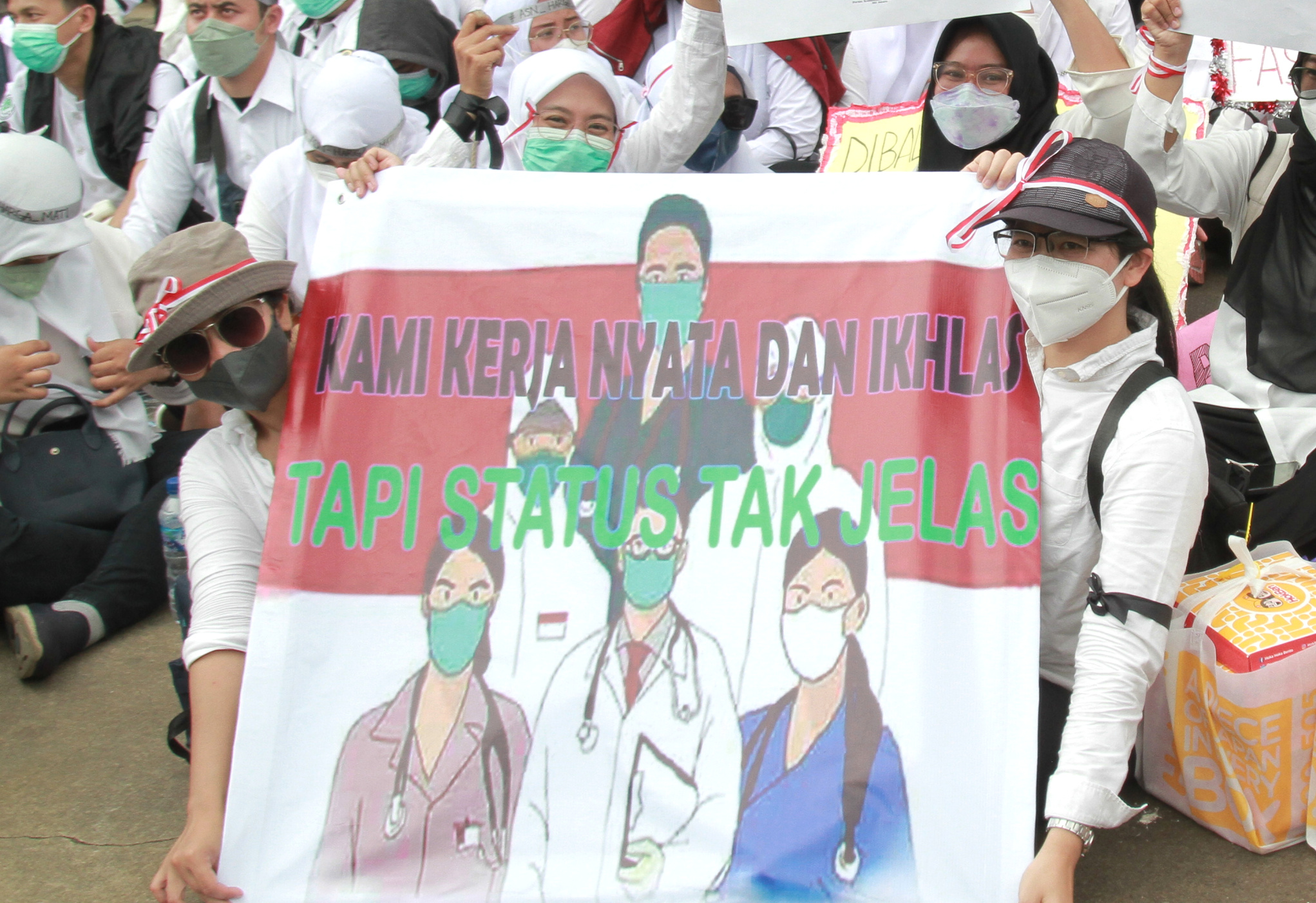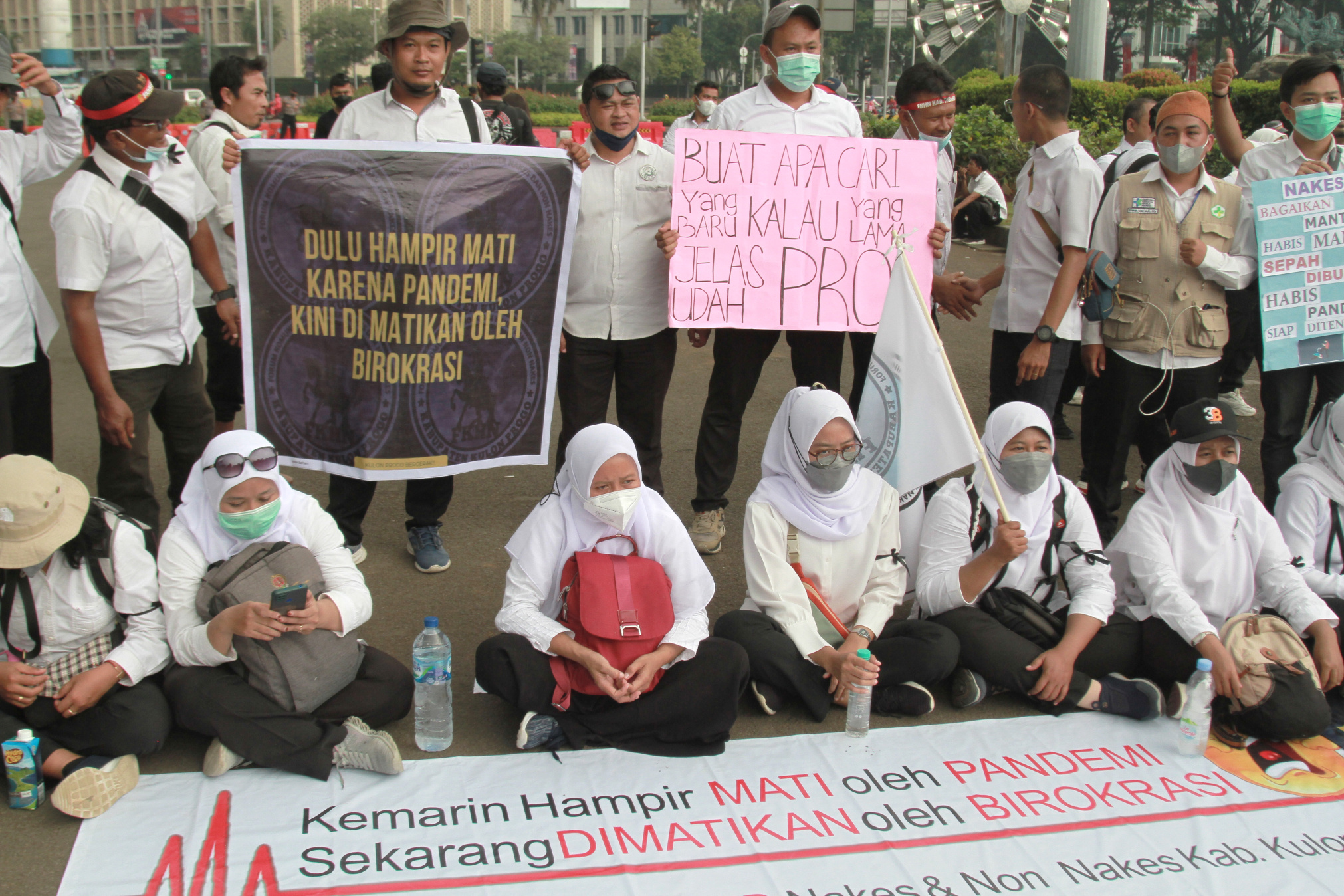 Nakes Gelar Aksi Demo di Patung Kuda Tuntut Menjadi ASN