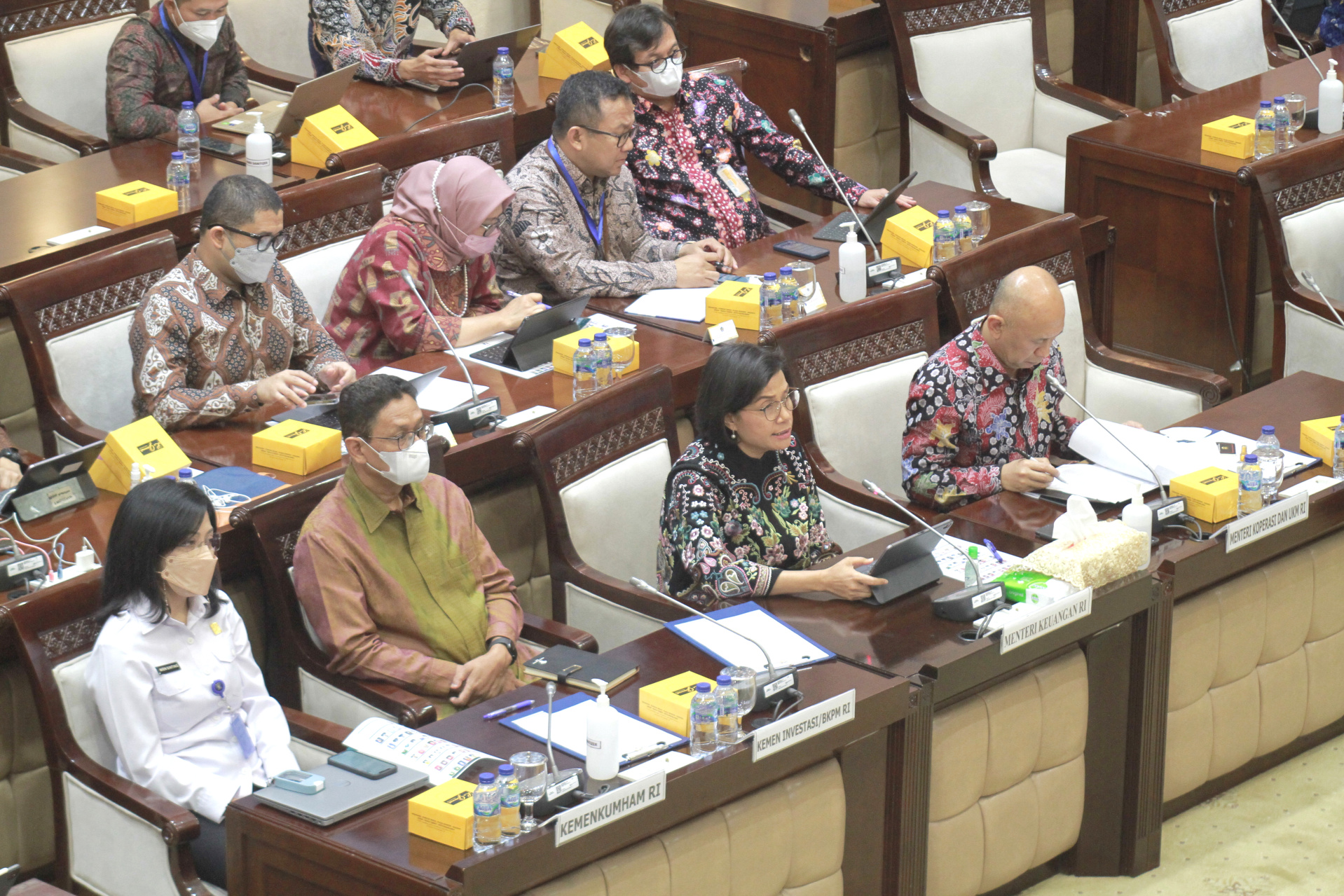 Komisi XI DPR gelar rapat kerja bersama Menkeu, Sri Mulyani, Menkop, Teten Masduki, KemenInvestasi/BKPM, Kemenkumham (Ashar/SinPo.id)