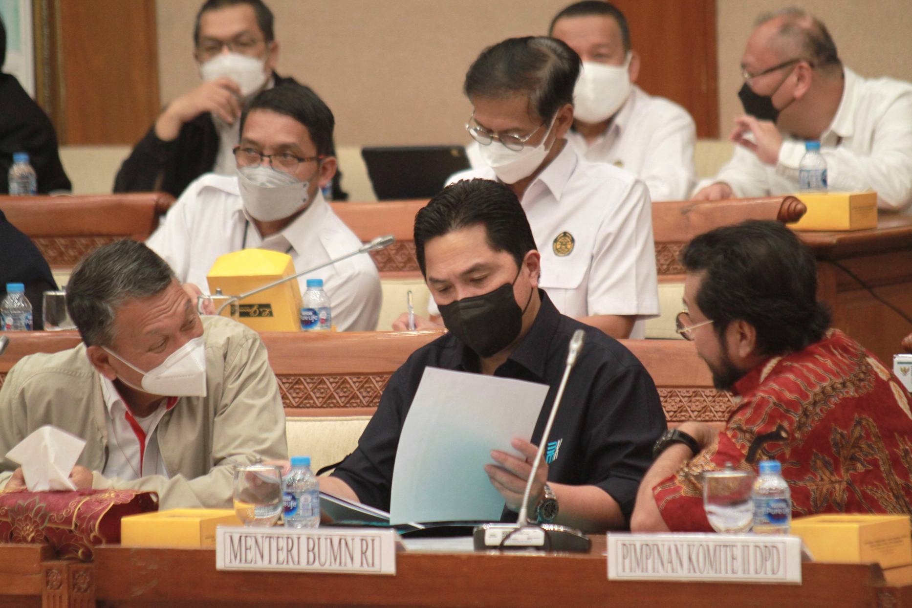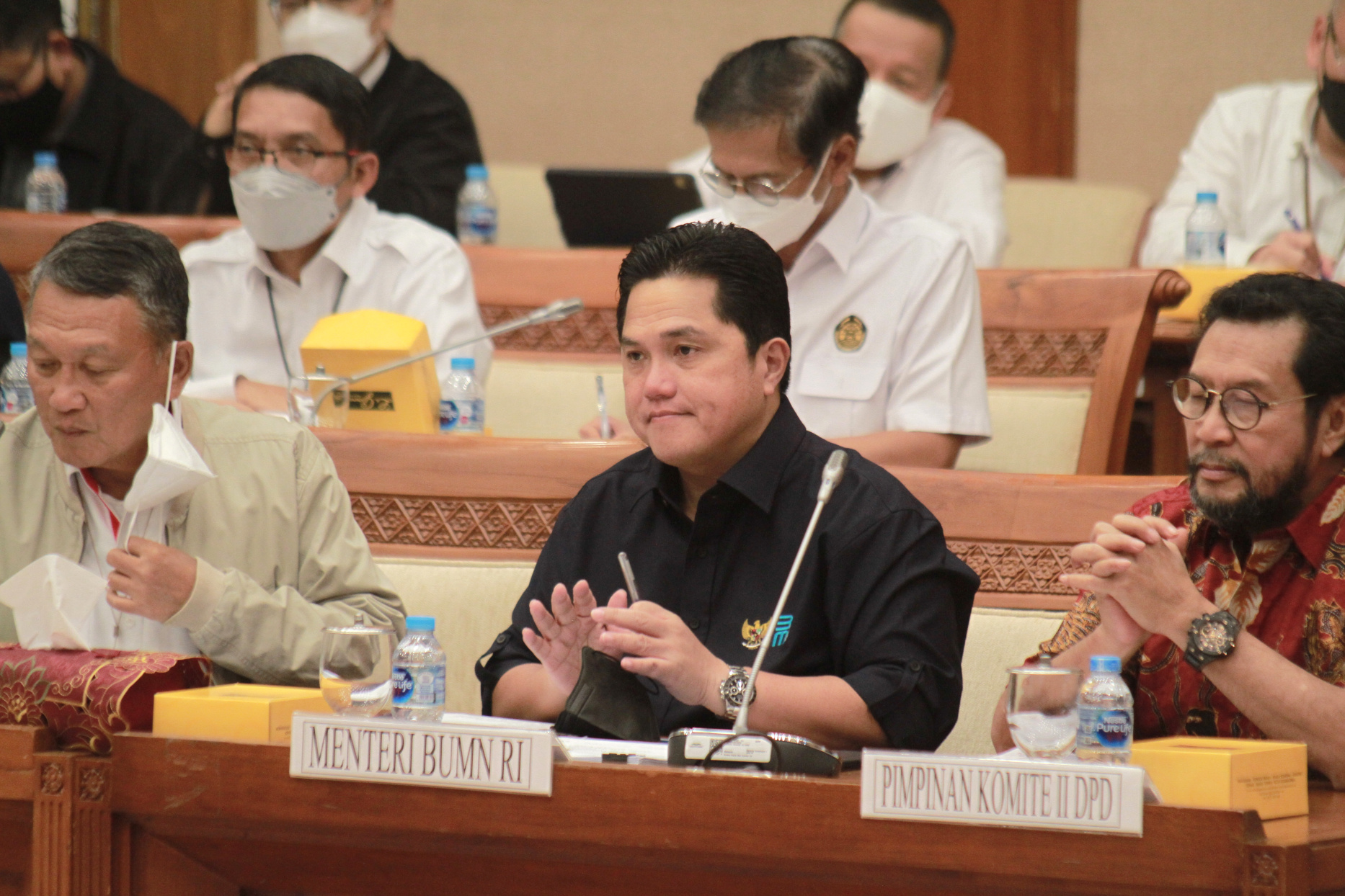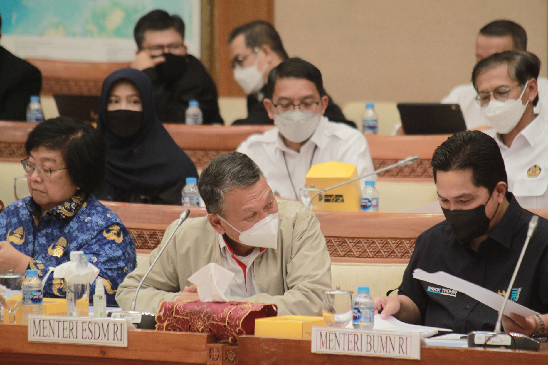 SinPo.id - Komisi VII DPR RI menggelar Rapat Kerja (Raker) bersama Menteri Badan Usaha Milik Negara (BUMN), Erick Tohir, Menteri Energi dan Sumber Data Mineral (ESDM), Arifin Tasrif, Menteri Lingkungan Hidup dan Kehutanan (LHK), Siti Nurbaya, dan Komite II DPD di Kompleks Parlemen, Senayan, Jakarta, Selasa (29 November 2022). Dalam Raker tersebut dipimpin oleh Ketua Komisi VII, Sugeng Suparwoto membahas agenda mengenai penjelasan Musyawarah Rancangan Undang-Undang Energi Baru dan Energi Terbarukan (RUU EB-ET).