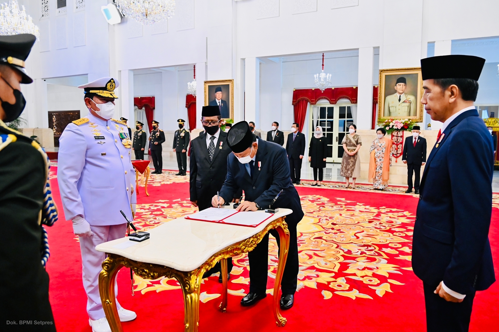 Menhan Pak Bowo dampingi Presiden Jokowi melantik Panglima TNI Laksamana Yudo Margono di Istana Negara (Foto:Dokumen Prabowo/SinPo.id)
