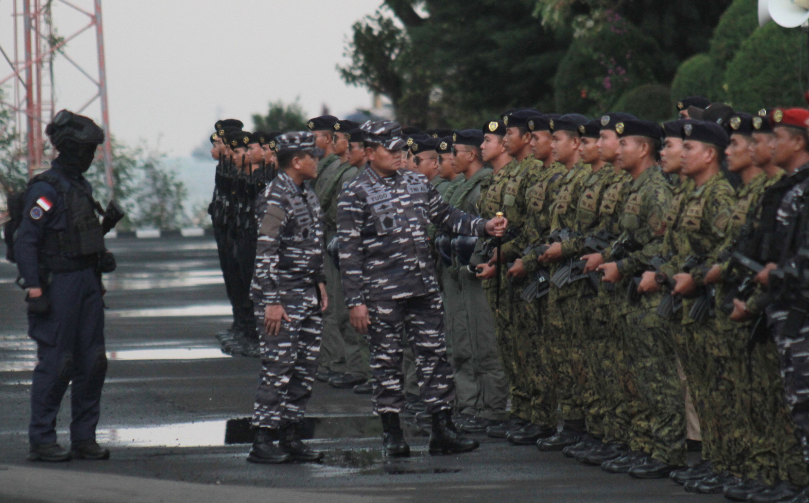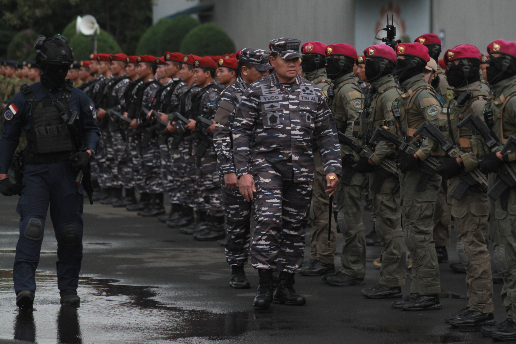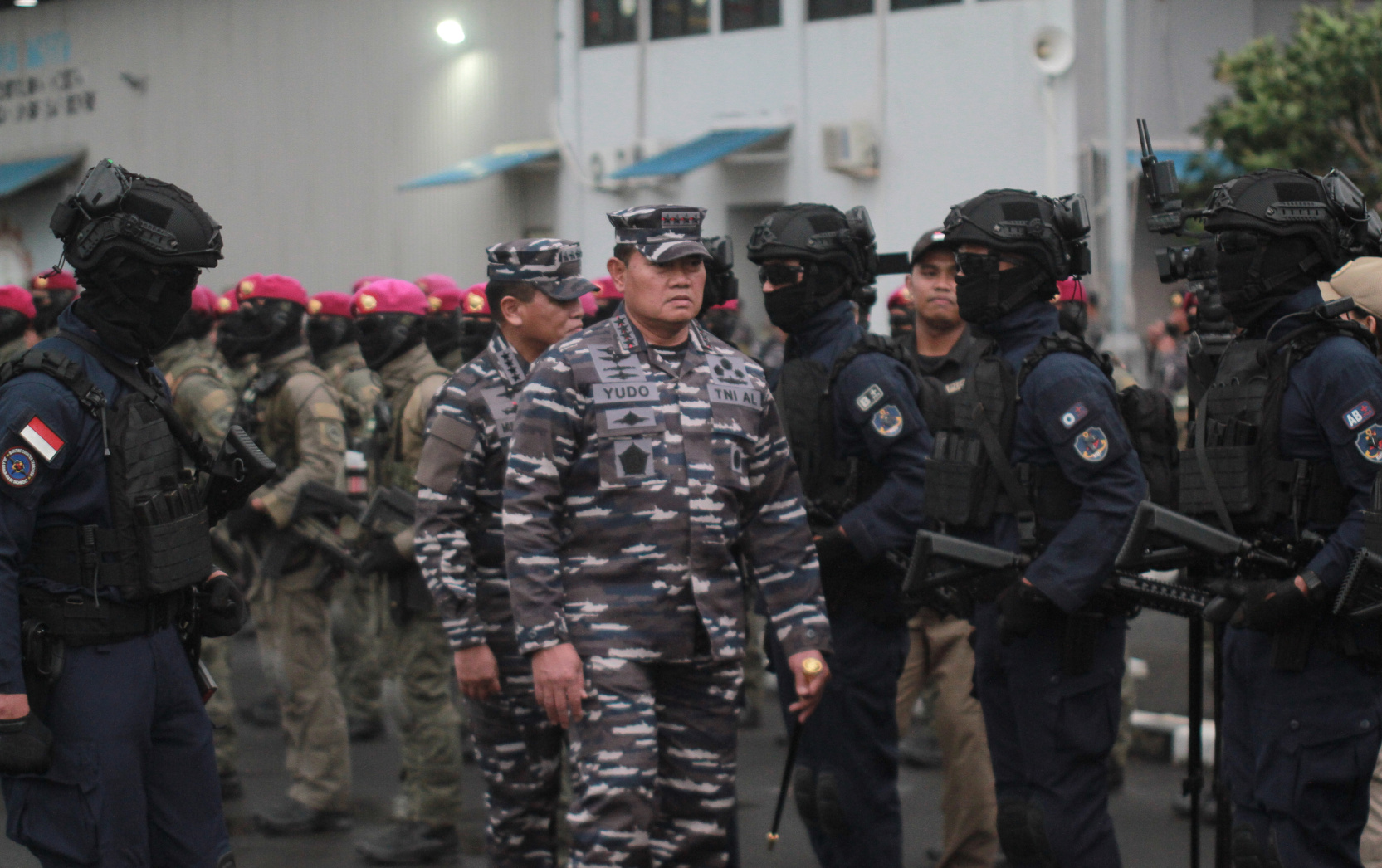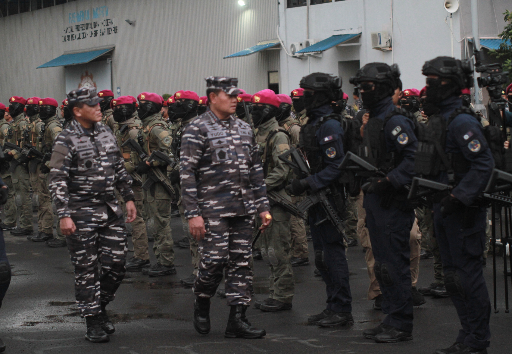 SinPo.id - Markas Besar Angkatan Laut (Mabesal) menggelar tradisi Admiral Inspection menjelang Serah Terima Jabatan (Sertijab) Kepala Staf Angkatan Laut (KASAL) dari Laksamana TNI Yudo Margono yang saat ini menjabat sebagai Panglima TNI kepada penggantinya Laksamana Madya TNI Muhammad Ali di Dermaga Sunda Pondok Dayung, Jakarta, Rabu (28 Desember 2022). Dalam acara Admiral Inspection tersebut hadir Panglima TNI Laksamana TNI Yudo Margono didampingi oleh KASAL Laksamana Muhammad Ali melaksanakan inspeksi kesiapan pasukan TNI-AL dari Satuan Udara Udara Koarmada RI, Kopaska, Denjaka, Taifibi, Koppeba, Penerbang dan Kapal Selam, Pasukan Marinir dan menampilkan yel-yel serta menyanyikan Gending Jalesveva Jayamahe di Dermaga Sunda Pondok Dayung.