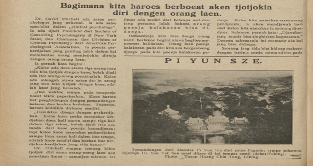 Sasoedanja bekerdja berat di itoe seantero hari sampe malem, maoelah kita mengaso dengen enak, tetapi pada hari besoknja djam 5 pagi, di waktoe keadahan oedara masi gelap, kita moesti lontjat dari tempat tidoer, sebab mendenger sirene jang membri tanda kadatengannja pesawat moesoe. Kita toempang sioer pergi ka tempat perlindoengan, tetapi ditoenggoe-toenggoe pesawat moesoe tida ada jang dateng..........