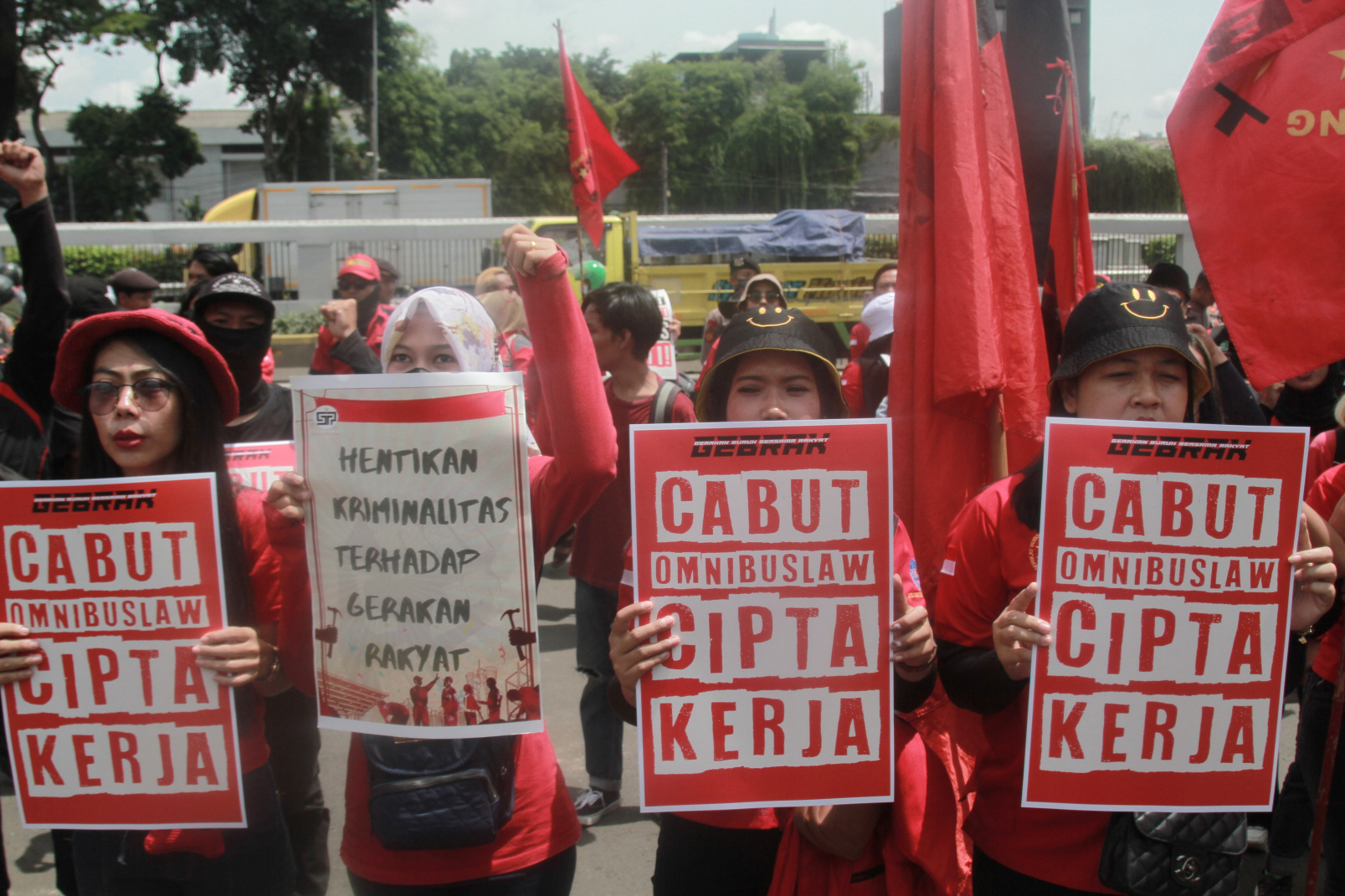 Ratusan Buruh gelar demo di depan DPR menuntut pemerintah agar segera mencabut Perppu Cipta Kerja (Ashar/SinPo.id)