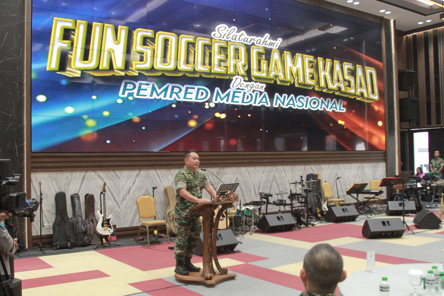 KASAD Jenderal TNI Dr Dudung menggelar fun soccer game KASAD bersama para pimpinan media nasional (Ashar/SinPo.id)nPo.id)