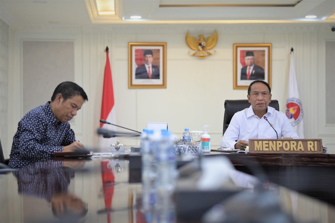 SinPo.id - Menteri Pemuda dan Olahraga Republik Indonesia (Menpora RI) Zainudin Amali melakukan rapat dengan Sekjen PSSI Yunus dan Direktur Utama PT Liga Indonesia Baru (LIB) Ferry Paulus di ruang rapat lantai 10, Gedung Graha Pemuda Kemenpora, Senayan, Jakarta Pusat, Kamis 19 Januari 2023.