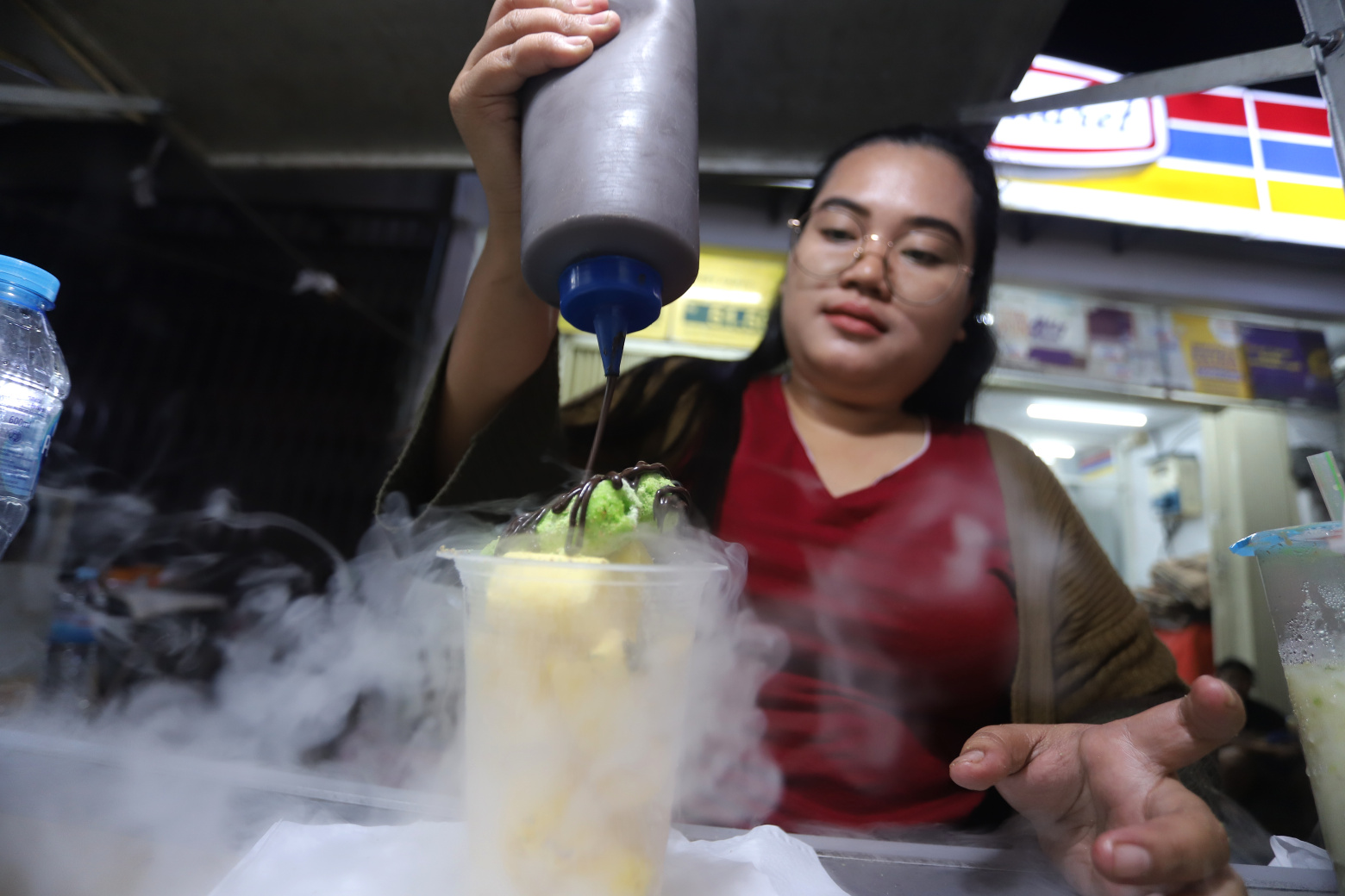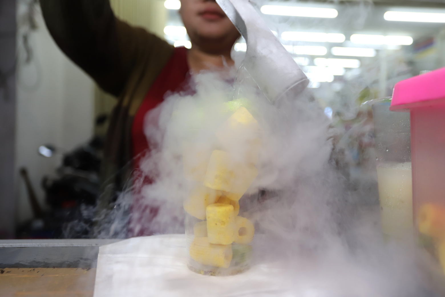 SinPo.id - Gerai makanan jajanan chiki ngebul yang berjualan di kawasan kuliner Pasar Lama, Tangerang, Banten, Sabtu (21 Januari 2023). Kasus keracunan yang dialami puluhan anak di Tasikmalaya, Jakarta serta Ponorogo usai menyantap jajanan chiki ngebul. Kementerian Kesehatan (Kemenkes) pun mengeluarkan Surat Edaran Nomor KL.02.02/C/90/2023 tentang Pengawasan Terhadap Penggunaan Nitrogen Cair Pada Produk Pangan Siap Saji.
