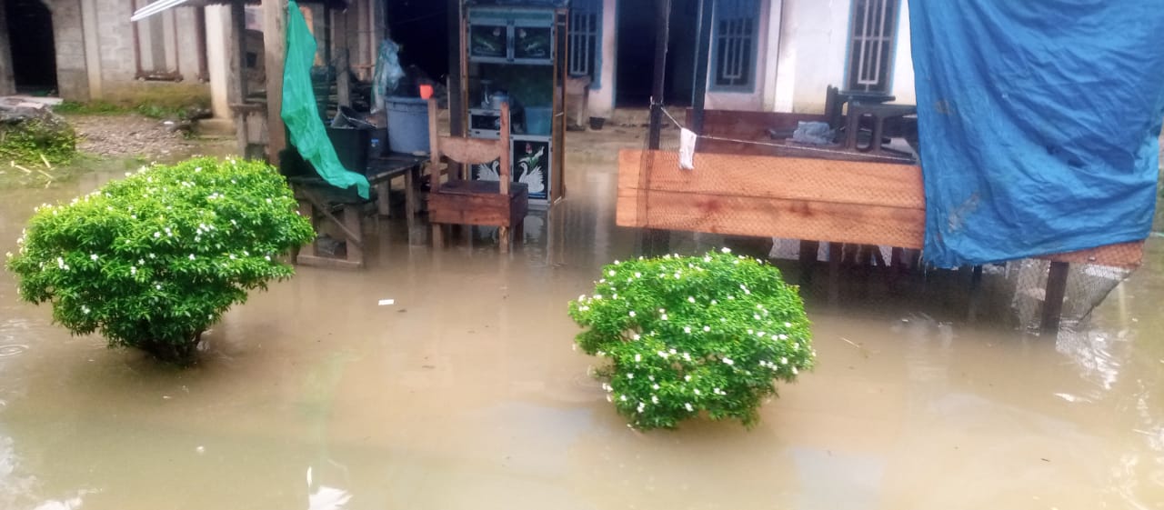 Sebanyak 104 KK terdampak dan 5 KK mengungsi saat banjir dengan tinggi muka air 40-80 cm menggenangi rumah warga.