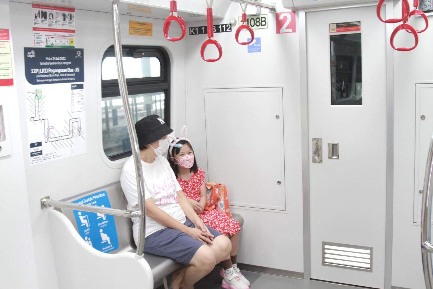 SinPo.id - Seorang anak sedang menggunakan transportasi LRT di Stasiun Pegangsaan Dua Jakarta, Selasa (24 Januari 2023). LRT Jakarta melalui campaign #NyamankanJakarta mewujudkan pelayanan transportasi publik yang prima dengan menumbuhkan rasa aman, nyaman dan ramah lingkungan sehingga terciptanya transportasi publik yang ramah anak, ramah perempuan serta ramah disabilitas dan lansia. Stasiun LRT Jakarta juga dilengkapi dengan berbagai fasilitas ramah difabel, ramah anak dan perempuan antara lain Toilet khusus Disabilitas, Pos Kesehatan dan Nursery Room, Pos Sahabat Perempuan dan Anak (SAPA), kursi roda yang disertai dengan ramp di setiap stasiun.