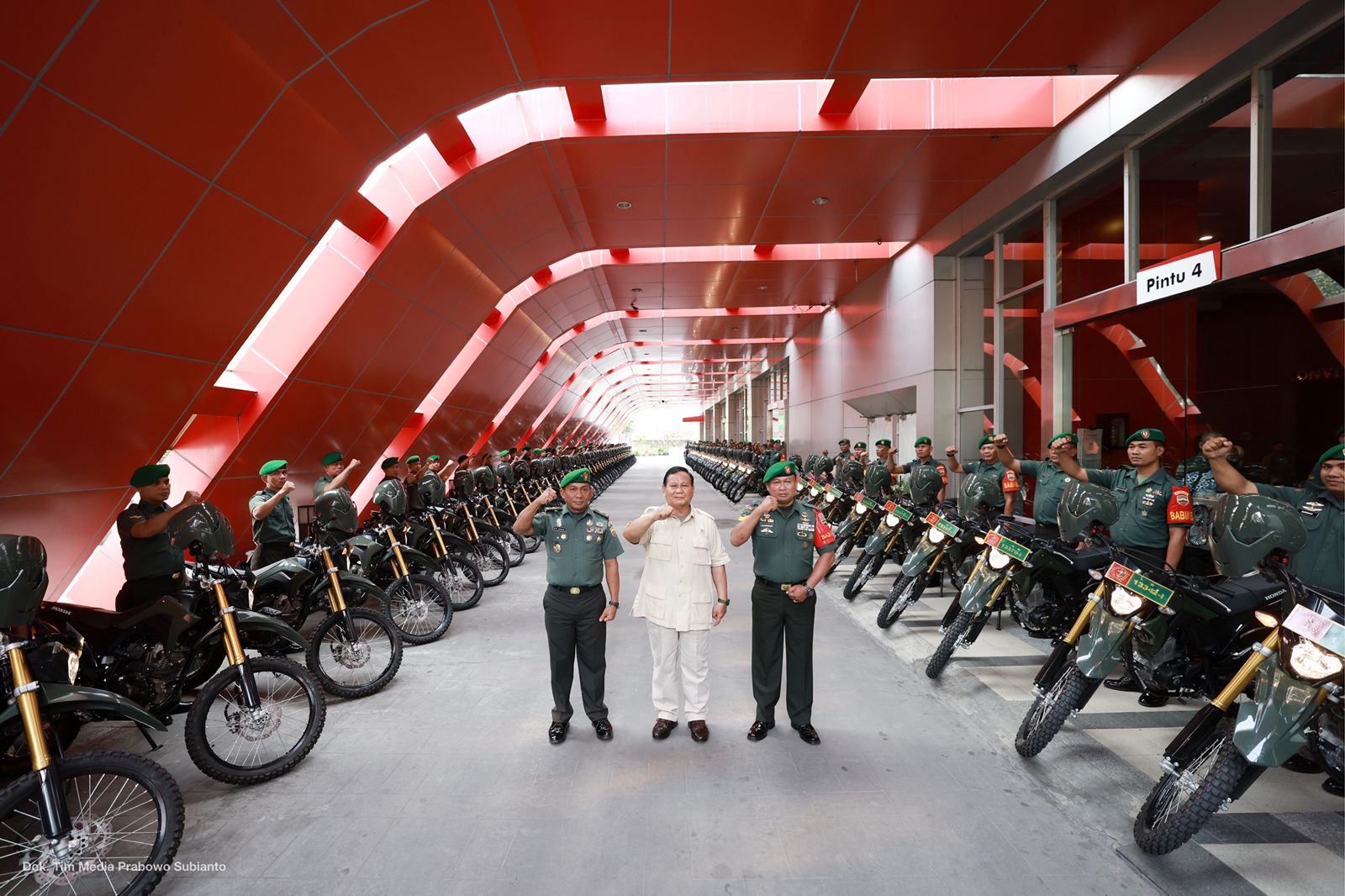 Dalam acara tersebut Prabowo juga secara simbolis menyerahkan 100 unit sepeda motor kepada Babinsa Kodam I Bukit Barisan.