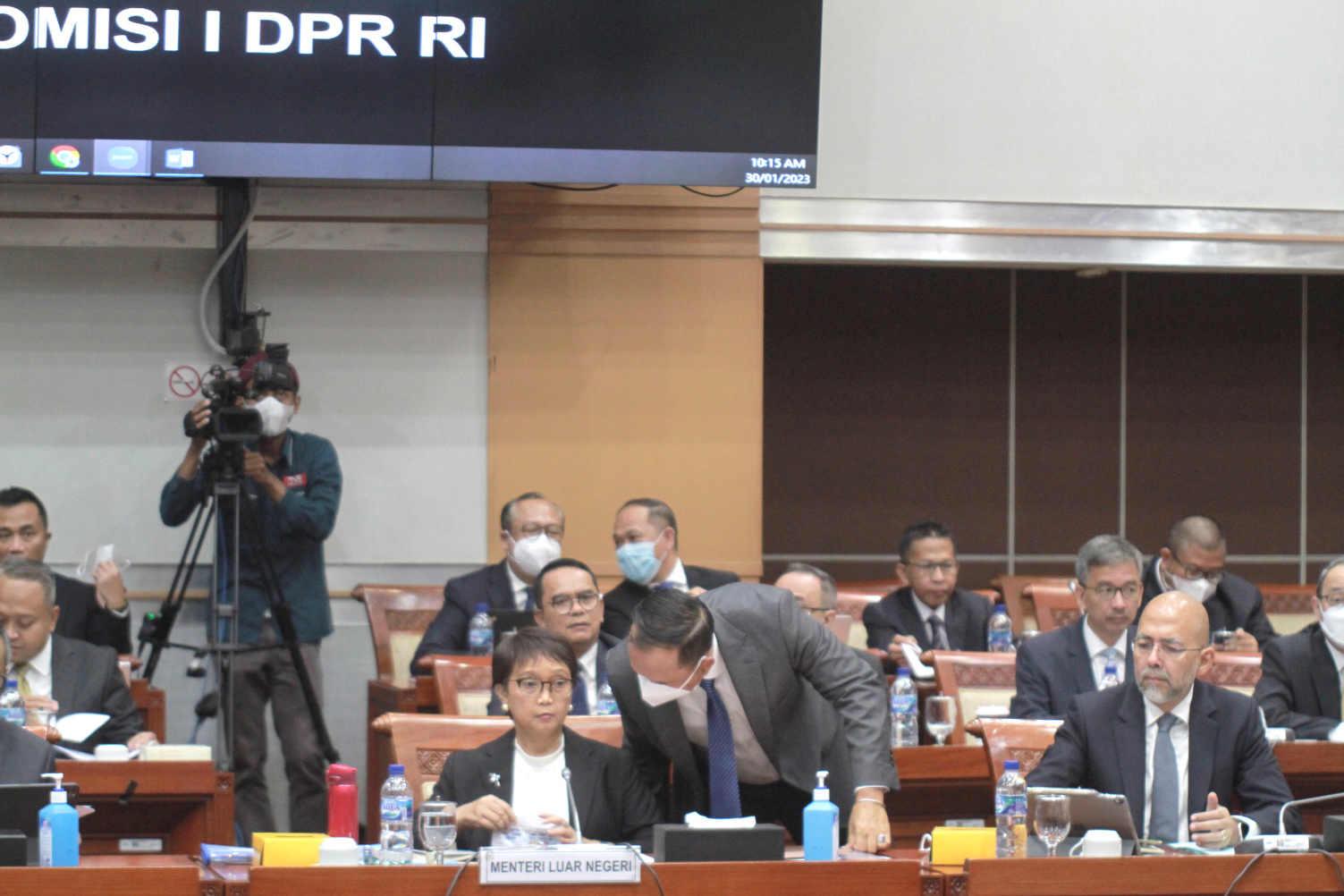 SinPo.id - Komisi I DPR menggelar Rapat Kerja (Raker) dengan Menteri Luar Negeri (Menlu) Retno Marsudi di Kompleks Parlemen, Senayan, Jakarta, Senin (30 Januari 2023). Dalam raker tersebut yang dipimpin langsung oleh Wakil Pimpinan Komisi I DPR Teuku Riefky Harsya membahas Rencana kerja dan Program Prioritas Kekuatan Indonesia di ASEAN Tahun 2023 serta Permasalahan Infrastruktur Diplomasi di Perwakilan-Perwakilan RI di Luar Negeri.