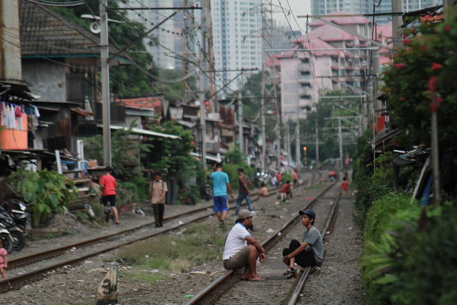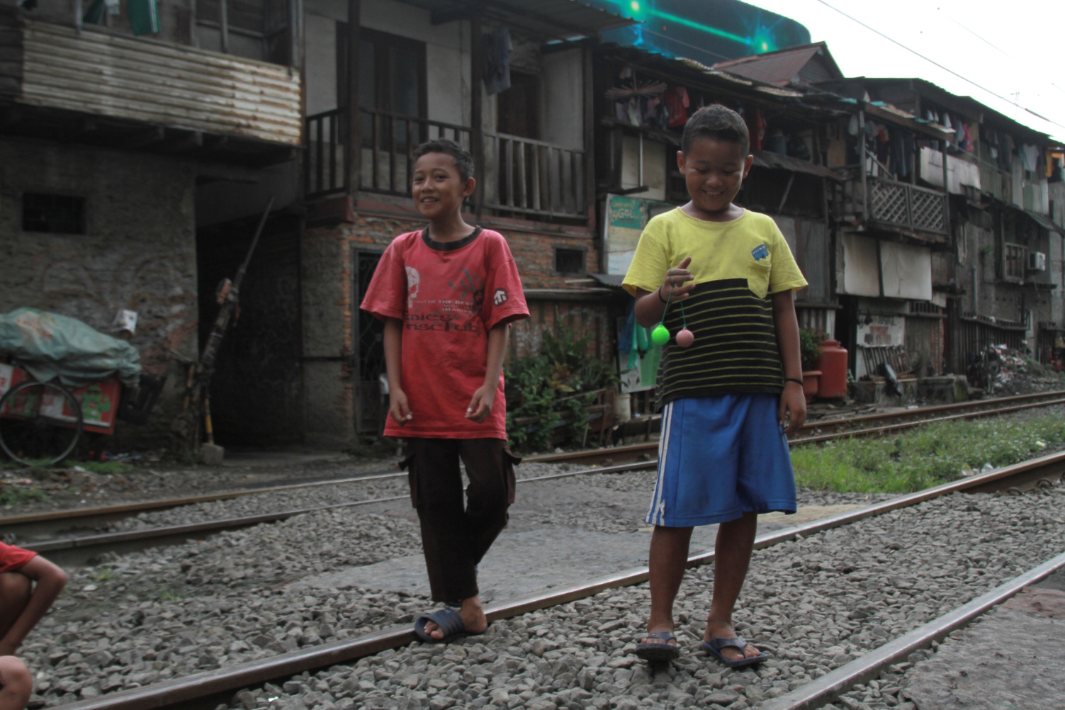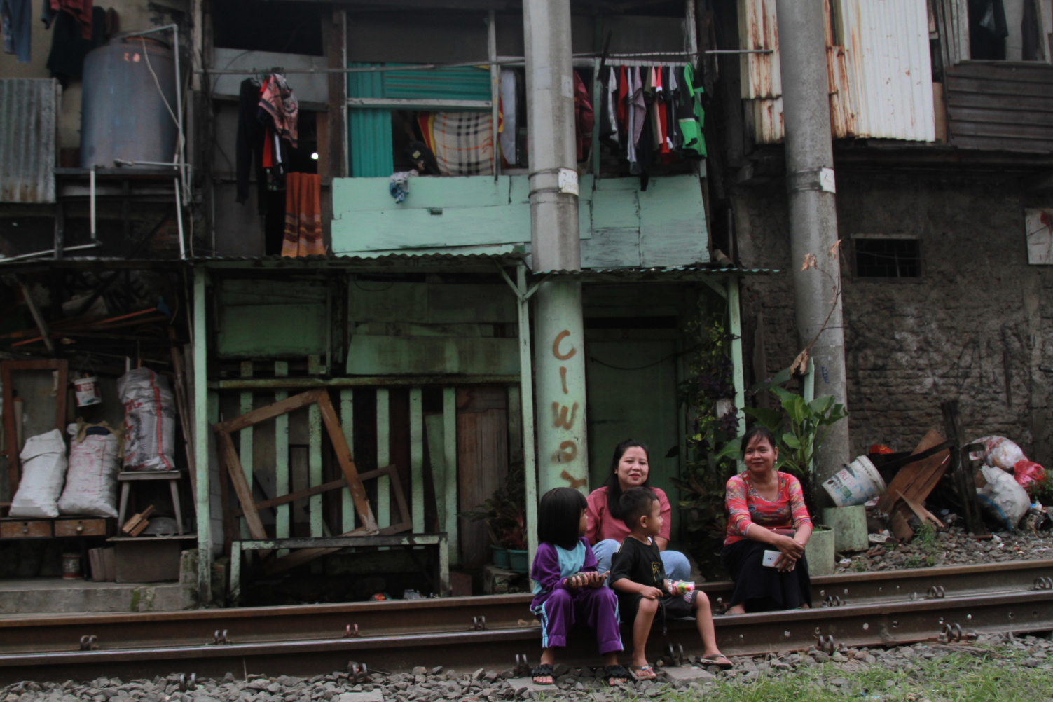 Warga bantaran rel pejompongan menikmati sore hari (Ashar/SinPo.id)