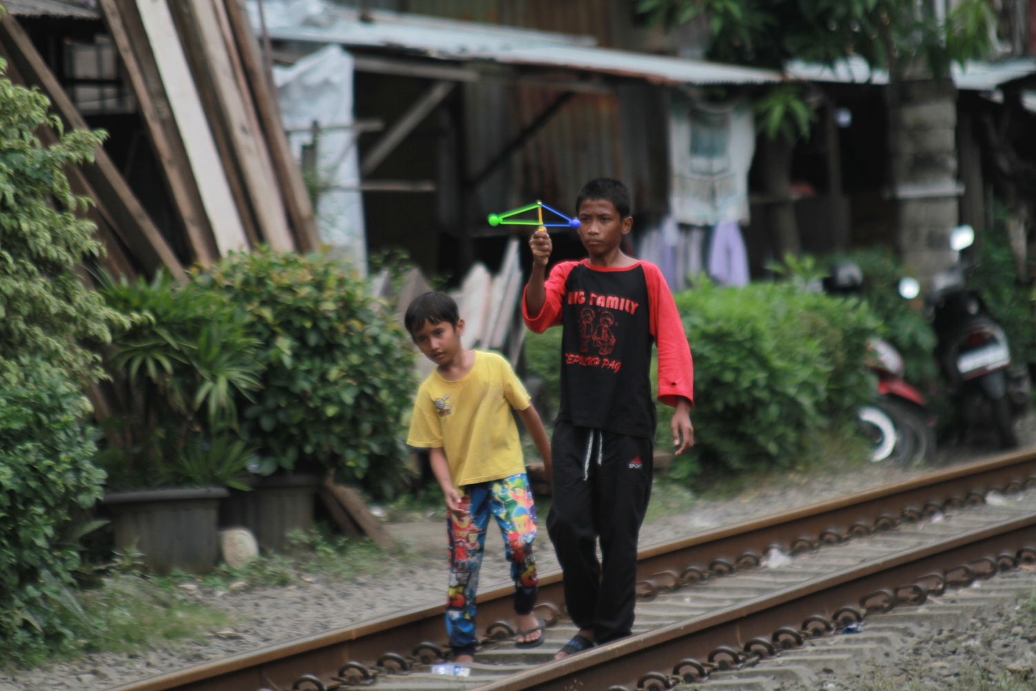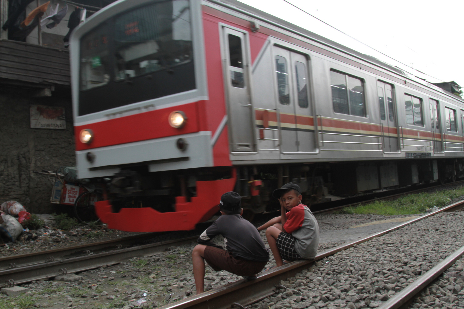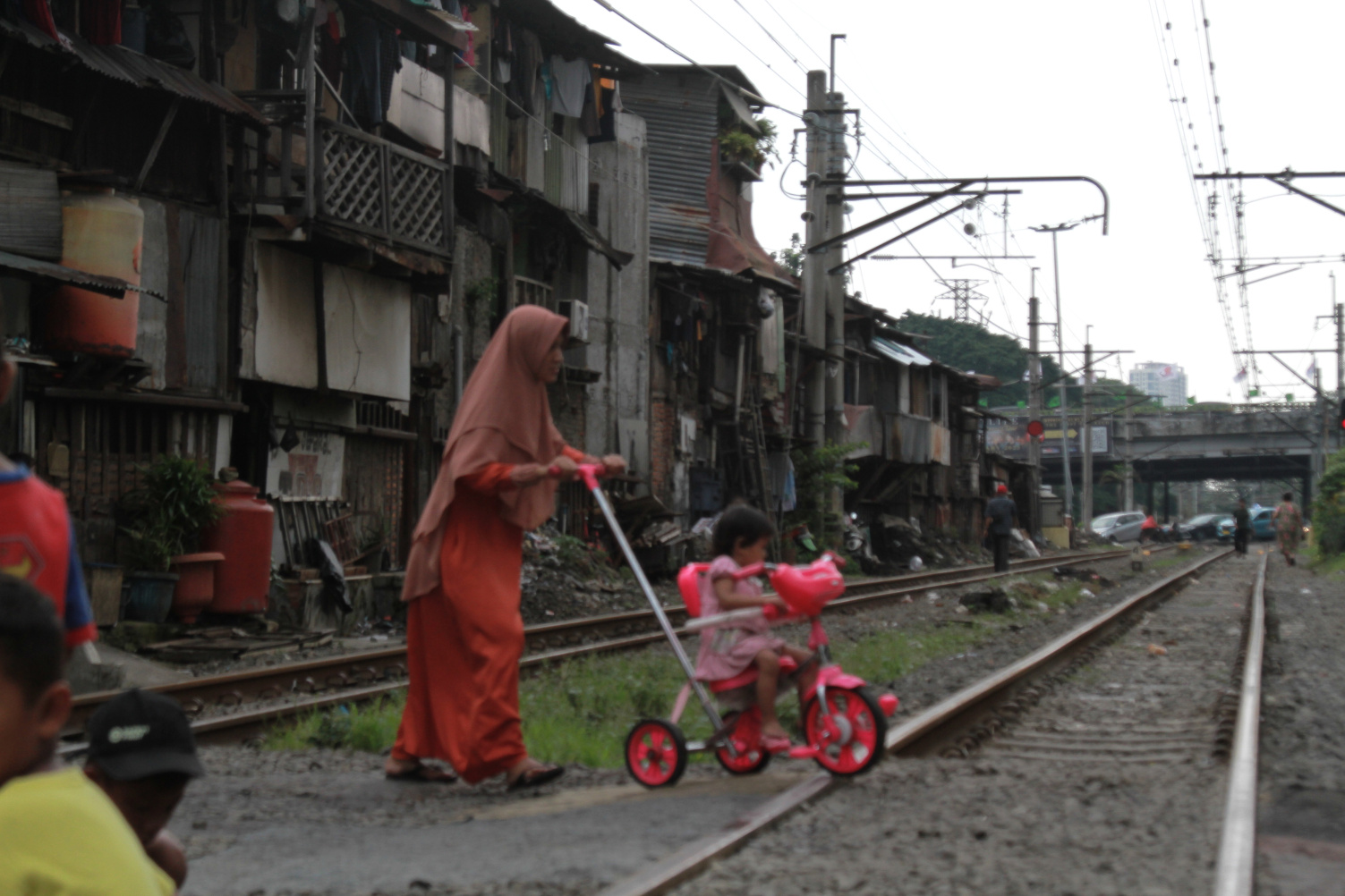 Warga bantaran rel pejompongan menikmati sore hari (Ashar/SinPo.id)