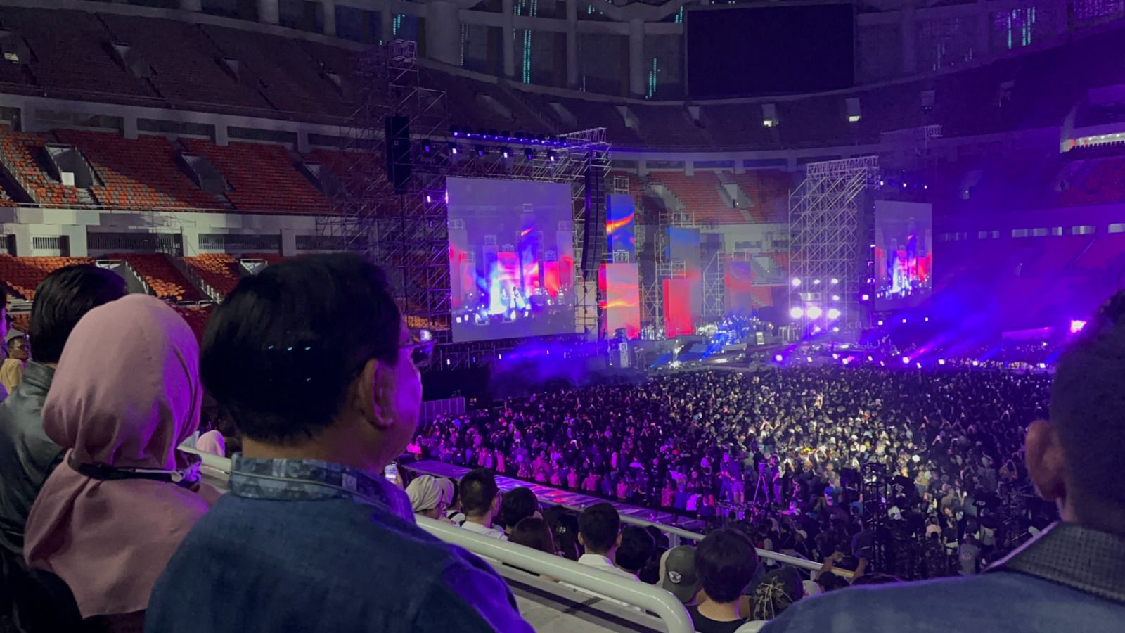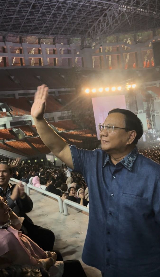 Menhan Prabowo Subianto hadiri konser Pesta Rakyat 30 Tahun Dewa 19 di JIS (Foto:Tim Prabowo/SinPo.id)