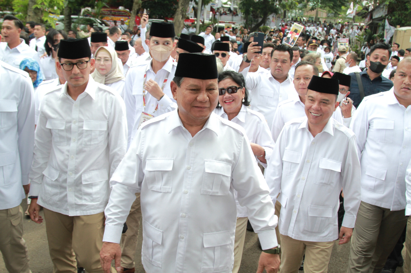 SinPo.id - Ketua Umum Partai Gerindra Prabowo Subianto menghadiri perayaan Hari Ulang Tahun (HUT) Ke-15 Partai Gerindra, di Kantor DPP Gerindra, Jakarta, Senin (6 Febuari 2023). Acara HUT Ke-15 Gerindra dengan memberikan santunan pada anak yatim, Donor darah, pembagian sembako dan pengobatan gratis bagi warga sekitar. Kehadiran Prabowo didampingi Wakil Ketua Dewan Pembina Partai Gerindra Hashim Djojohadikusumo, Wakil Ketua Dewan Pembina, Sandiaga Uno, Ketua Harian DPP Gerindra Prof Sufmi Dasco Ahmad dan Sekretaris Jenderal (Sekjen) Ahmad Muzani. Prabowo mengatakan dalam sambutannya HUT Ke-15 Gerindra mengucapkan Terima kasih kepada Presiden Jokowi yang telah memberikan sambutan lewat video daring dan selalu mendukung kinerja Presiden. Prabowo mengatakan saudara-saudara, ada satu pengalaman saya puluhan tahun menjadi tentara, percayalah pada pimpinanmu, kalau kau tidak bisa percaya kepada pimpinan, kau berhenti, kau mengundurkan diri.