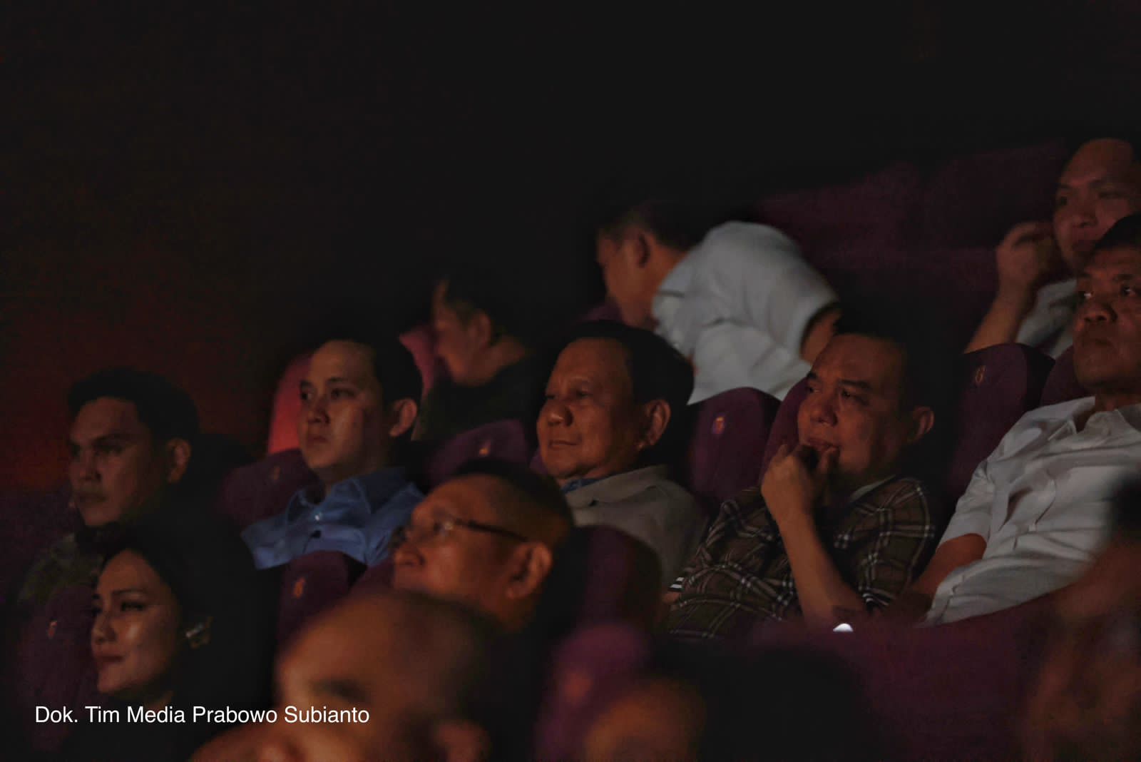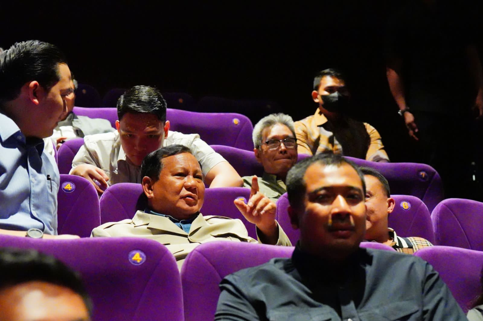 Menhan Prabowo nobar film Adagium yang berpesan nasionalisme karya sutradara Rizal Mantovani (Foto:Tim Prabowo/SinPo.id)
