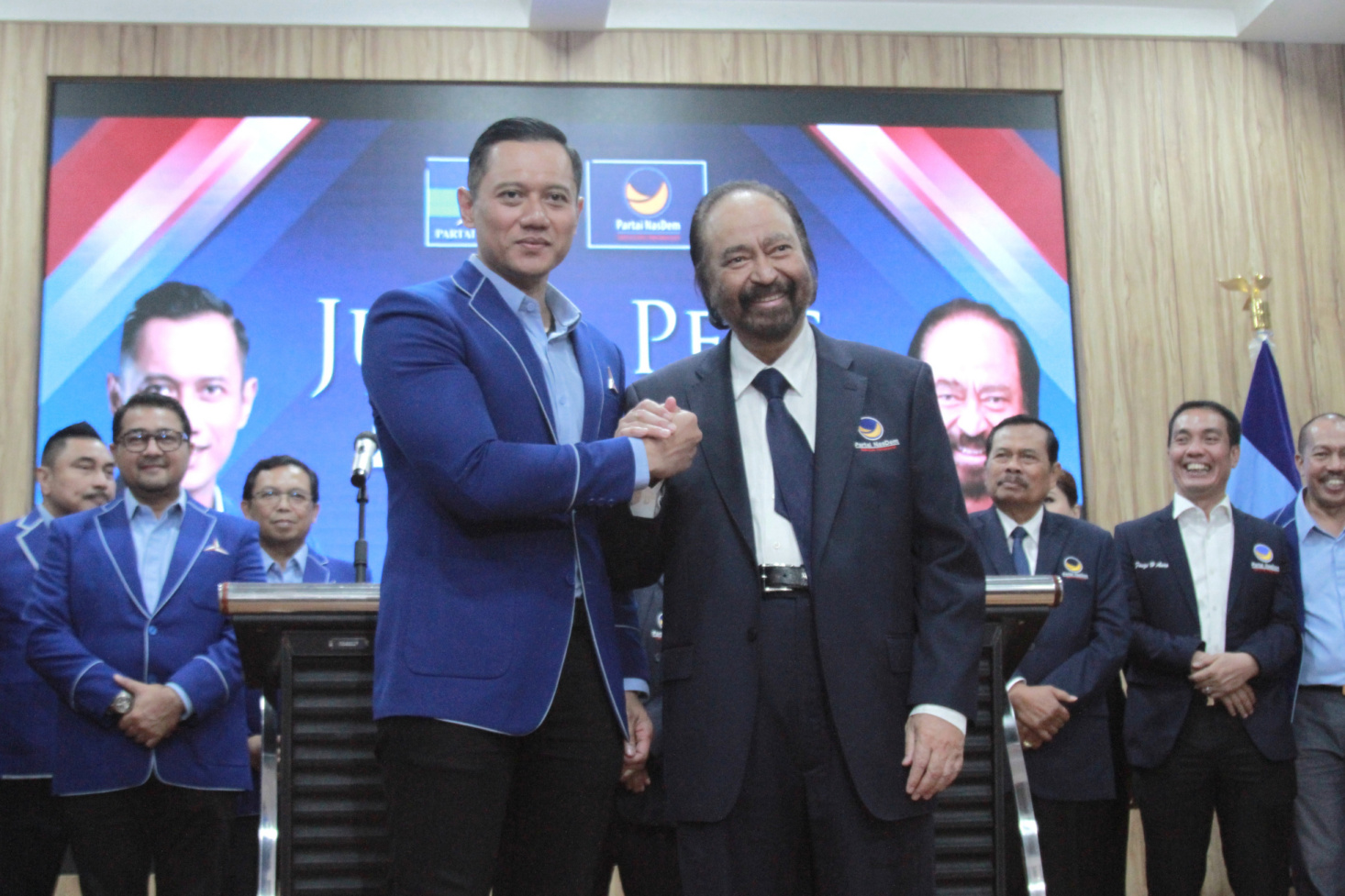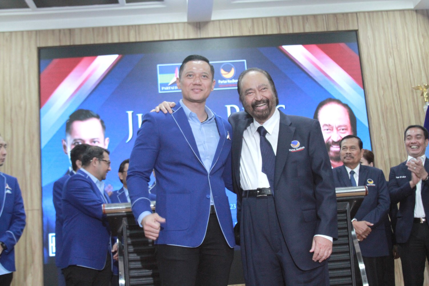 SinPo.id - Ketua Umum Partai Demokrat Agus Harimurti Yudhoyono atau yang akrab disapa AHY menerima kunjungan dari Ketua Umum Partai NasDem Surya Paloh di Kantor DPP Demokrat, Jakarta, Rabu (22 Februari 2023). Dalam kunjungan balasan tersebut Ketua Umum NasDem Surya Paloh ke Ketua Umum Partai Demokrat AHY untuk bersilaturahmi dan membahas isu terkini menjelang Pemilu 2024.