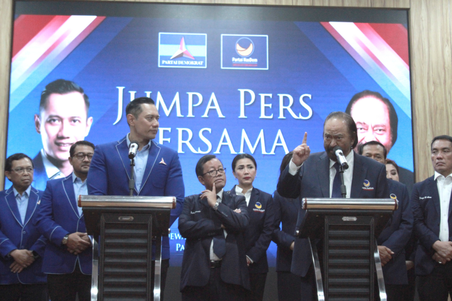Ketua Umum NasDem Surya Paloh temui Ketua Umum Partai Demokrat Agus Harimurti Yudhoyono untuk bersilaturahmi dan membahas isu terkini jelang Pemilu 2024 (Ashar/SinPo.id)