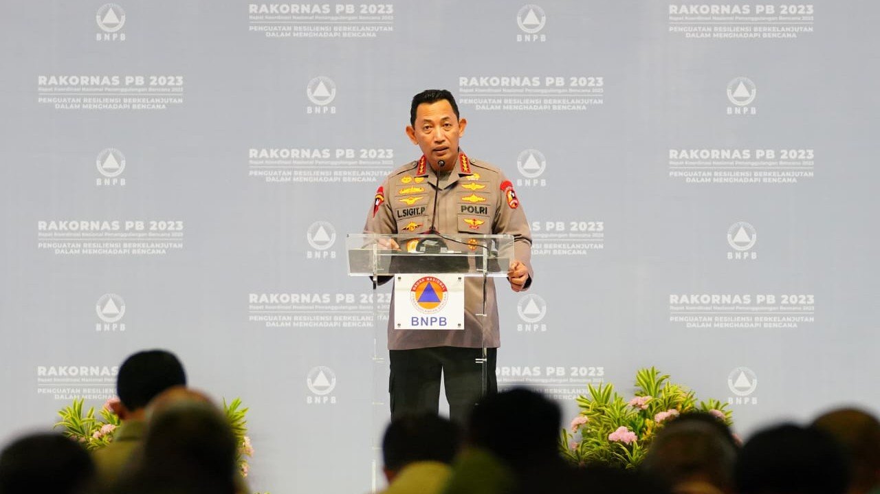 SinPo.id - Kapolri Jenderal Listyo Sigit Prabowo menekankan soal pentingnya untuk menguatkan manajemen risiko bencana alam di Indonesia, sebagaimana instruksi dari Presiden Joko Widodo (Jokowi) kepada TNI, Polri, dan seluruh stakeholder terkait lainnya. Hal tersebut disampaikan oleh Kapolri saat menjadi salah satu Pemateri pada Rakornas Badan Nasional Penanggulangan Bencana (BNPB), Jakarta, Kamis, 2 Maret 2023.