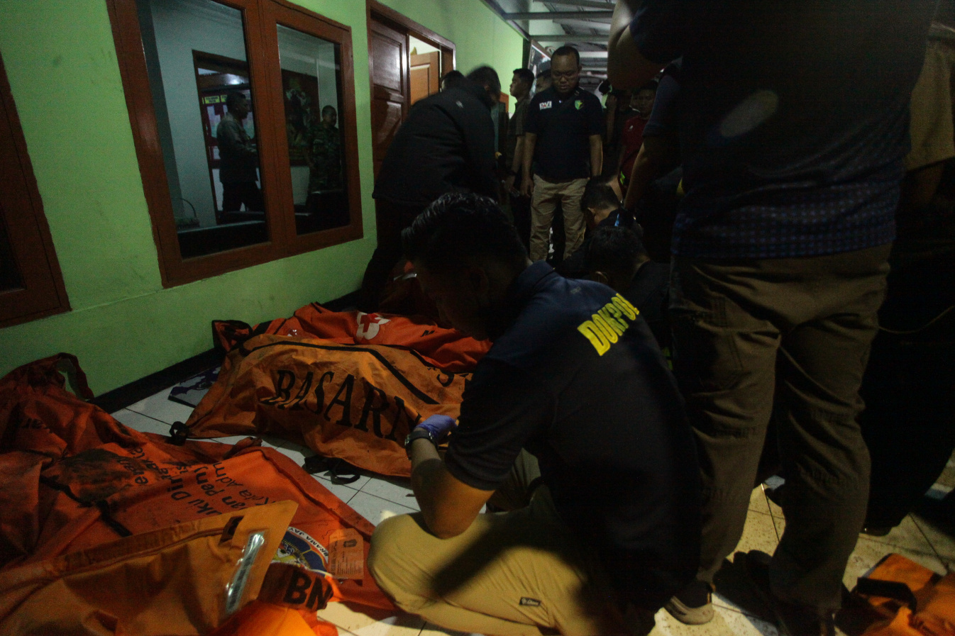 SinPo.id - Petugas kesehatan dari Kedokteran Kepolisian (Dokpol) memeriksa kantong jenazah korban kebakaran Depo Pertamina di kawasan Jalan Koramil, Rawa Badak Selatan, Koja, Jakarta Utara, Jumat (3 Maret 2023). Menurut data dari Dinas Penanggulangan Kebakaran dan Penyelamatan Provinsi DKI Jakarta, korban tewas berjumlah 14 orang dewasa dan dua orang anak.