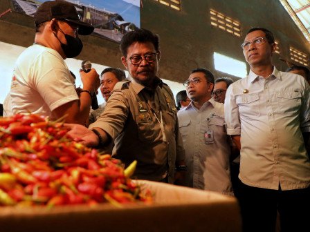 Heru mengatakan bahwa Kementerian Pertanian telah memasok ratusan ton komoditas cabai dan bawang di Pasar Induk Kramat Jati.