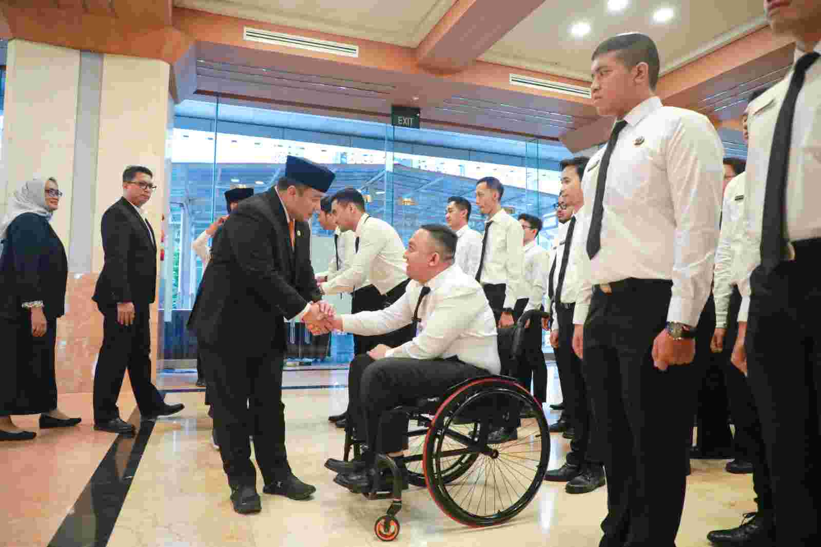 Bersama Menteri Pertanian RI Syahrul Yasin Limpo, Penjabat Gubernur Heru Budi Hartono mengecek ketersedian pangan di Pasar Induk Kramat Jati, Jakarta Timur.