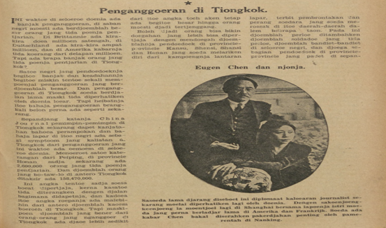 Tiongkok dari peng.anggoeran jang ini waktoe ada, oemoem di seloeroe doenia. Menoeroet sato katerangan dari Peiping, di provincie Honan sadja sekarang ada 2,600,000 orang jang tida poenja pencarian dan. Djoemblah orang jang bo-taw-lo di antero Tiongkok ditaksir ada 158,470,000. Ini angka tentoe sadja soesa boeat dipertjaja, kerna kasatoe tida diterangken dengen djalan bagimana didapetnja, dan. Kadoea itoe angka roepanja ada malebihin, dari antero djoemblah kaoem boeroéh di Tiongkok.