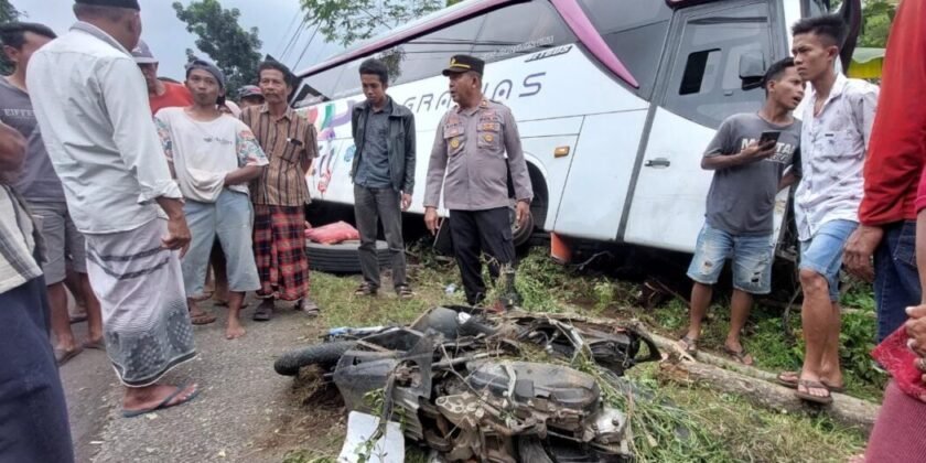 “Akibat rem blong, bus menabrak empat mobil dan sebuah sepeda motor. Bus sampai menyeret sejumlah kendaraan hingga sejauh sekitar satu kilometer,” kata dia.