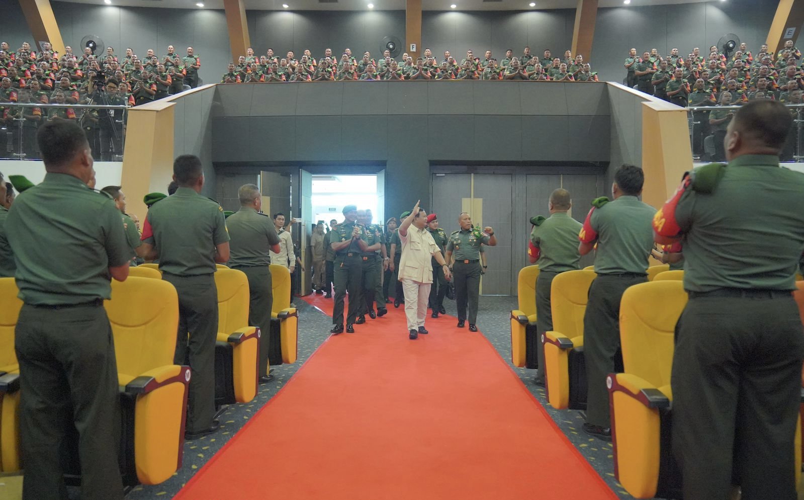 Prabowo dalam pembekalannya menyampaikan ucapan terima kasih atas sambutan yang begitu bersemangat. Ia menjelaskan bahwa untuk membangun pertahanan negara yang kuat maka harus diawali dari TNI yang berada di bawah komando teritorial.