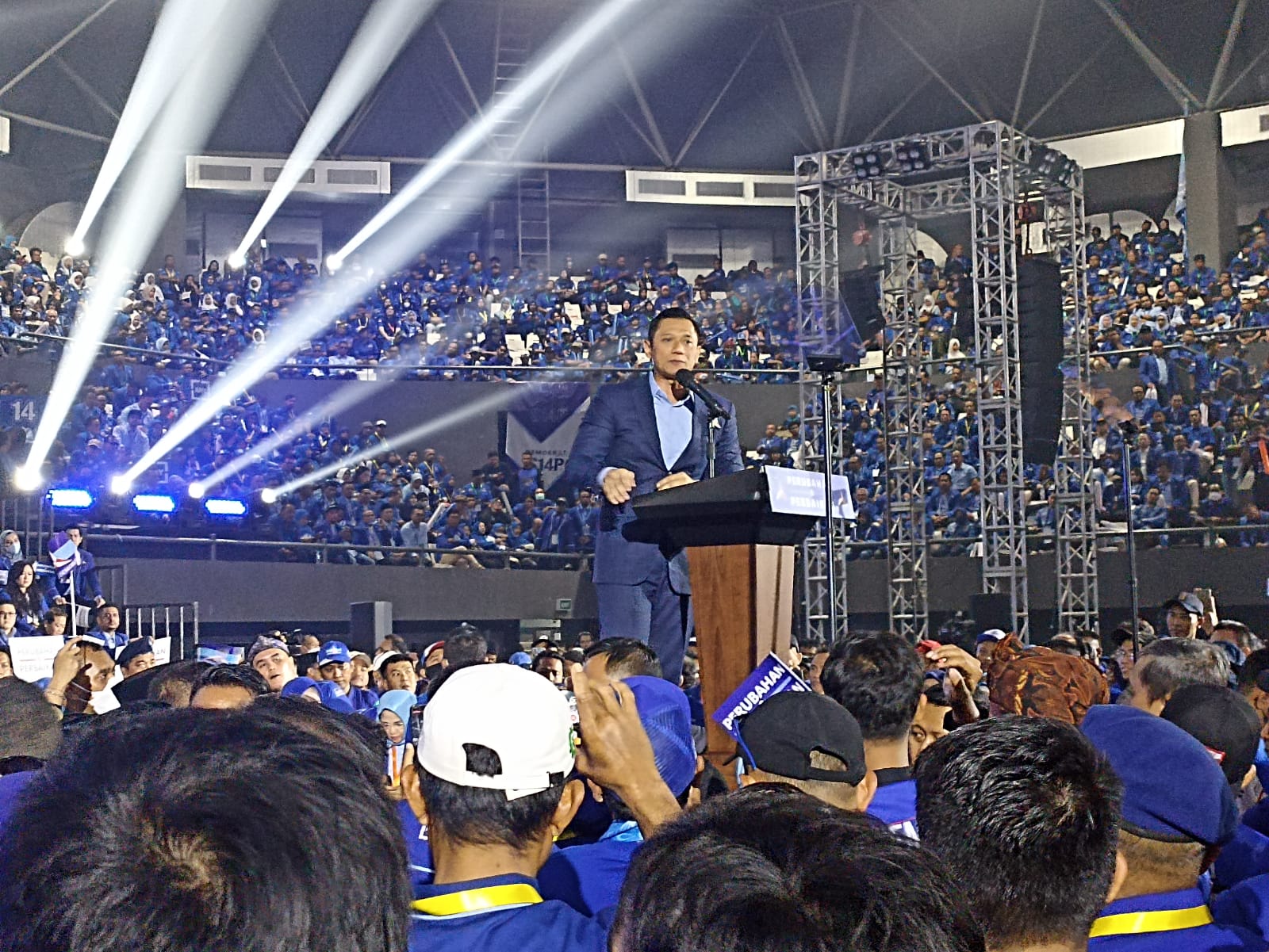 SinPo.id - Ketua Umum Partai Demokrat Agus Harimurti Yudhoyono (AHY) menyoroti isu penundaan Pemilihan Umum (Pemilu) 2024 dalam pidato politiknya di hadapan para kader Partai Demokrat di Senayan, Jakarta Selata pada, Selasa, 14 Maret 2023.