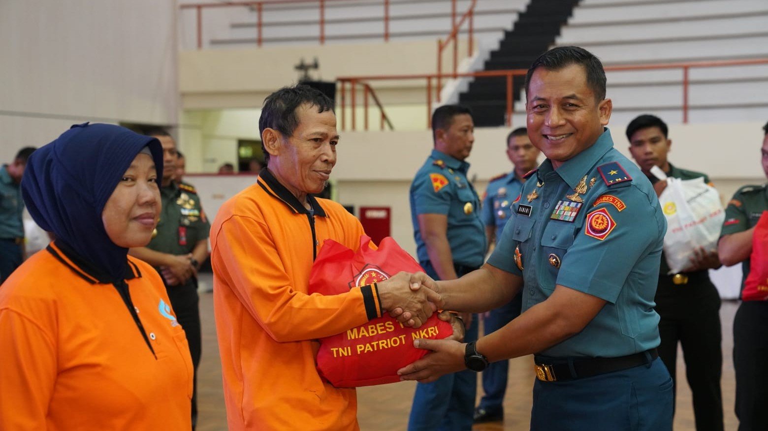 SinPo.id - Ketua Umum (Ketum) Dharma Pertiwi dan Ketua Umum IKKT PWA Vero Yudo Margono yang diwakili Komandan Denma Mabes TNI Brigjen TNI (Mar) Nawawi memberi bantuan secara simbolis berupa sembako kepada tenaga honorer dan seluruh Pegawai Harian Lepas (PHL) Mabes TNI. Pemberian sembako secara simbolis ini bertempat di GOR Ahmad Yani, Mabes TNI Cilangkap, Jakarta Timur, Kamis, 16 Maret 2023.