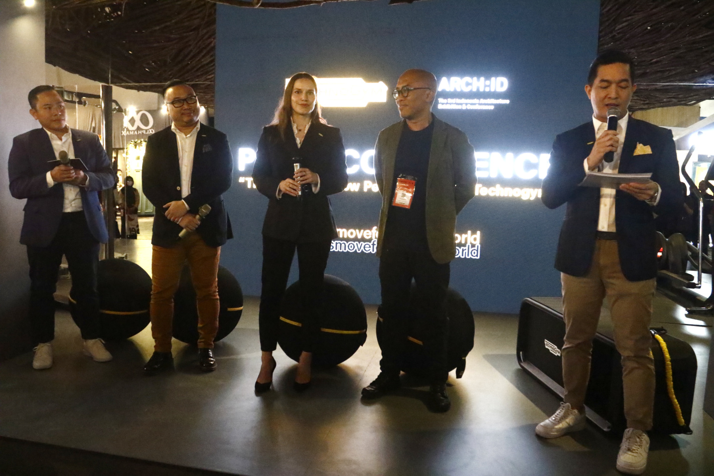 SinPo.id - Dari Kanan: Ceo Technogym Indonesia Ardi Setiadharma, Managing Director Technogym Indonesia Samuel Chin, A&D Business Development Manager APAC Michaela Rihova, Sahabat Selojene Ary Indra dalam jumpa pers di acara Festival ARCH:ID di ICE BSD, Tangerang, Banten, Kamis (16 Maret 2023) Sore. Technogym Indonesia ikut serta menjalin hubungan yang erat dengan para arsitek, dan pelaku industri bahan bangunan dan konstruksi dengan berpartisipasi dalam The Architecture Conference & Exhibition atau biasa disebut ARCH: ID 2023. Satu hal yang membuat acara ini berbeda adalah booth Technogym yang dirancang estetis dan unik, karya arsitek pemenang penghargaan "The Emerging Architectural Award”; Ary Indra. Ini adalah satu-satunya acara yang bisa diikuti oleh desainer lokal tampaknya bekerja sama dengan Technogym. Pesepakbola Profesional Marco Motta Mencoba alat Run Personal dari Technogym dalam Pameran ARCH:ID 2023 di ICE BSD. Produk Personal Line diciptakan dengan material paling mewah dan dikerjakan dengan pengerjaan yang berkualitas. Brand Ambassador Technobike Indonesia M Fadli saat mencoba Technogym Ride dalam Pameran ARCH:ID 2023 di ICE BSD Serpong.